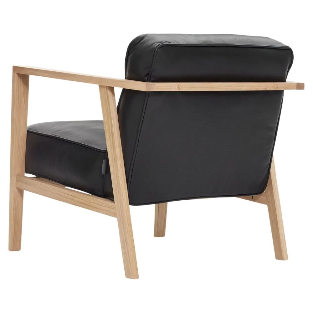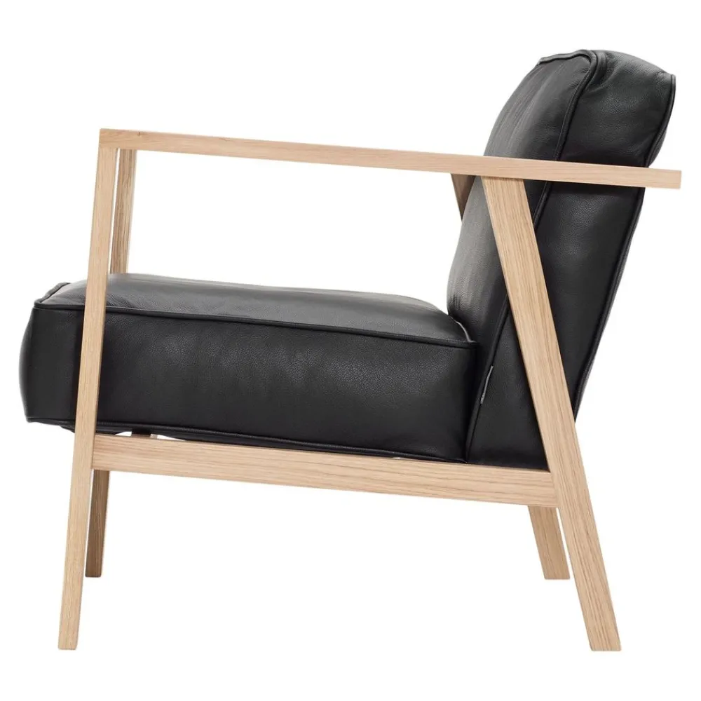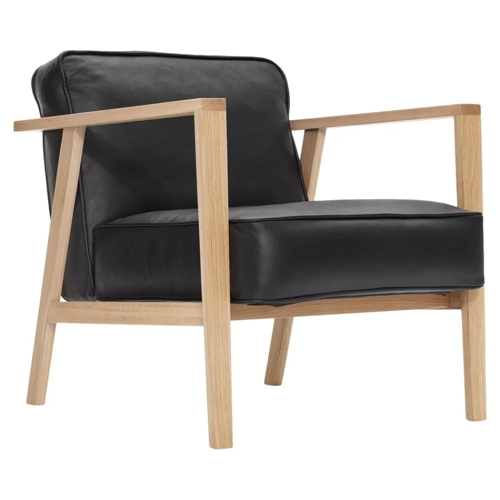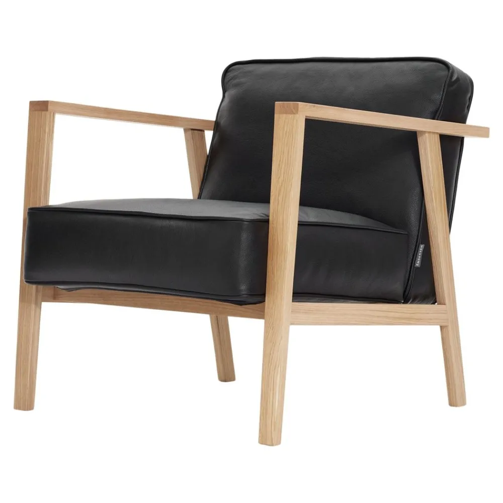 Der LC1 Lounge Chair von Andersen ist ein exklusives Möbelstück, das mit seiner Kombination aus schlankem Eichengestell und großen, bequemen Kissen ein äußerst modernes und nordisches Design aufweist, das dem Möbel einen auffälligen und exklusiven Look verleiht.