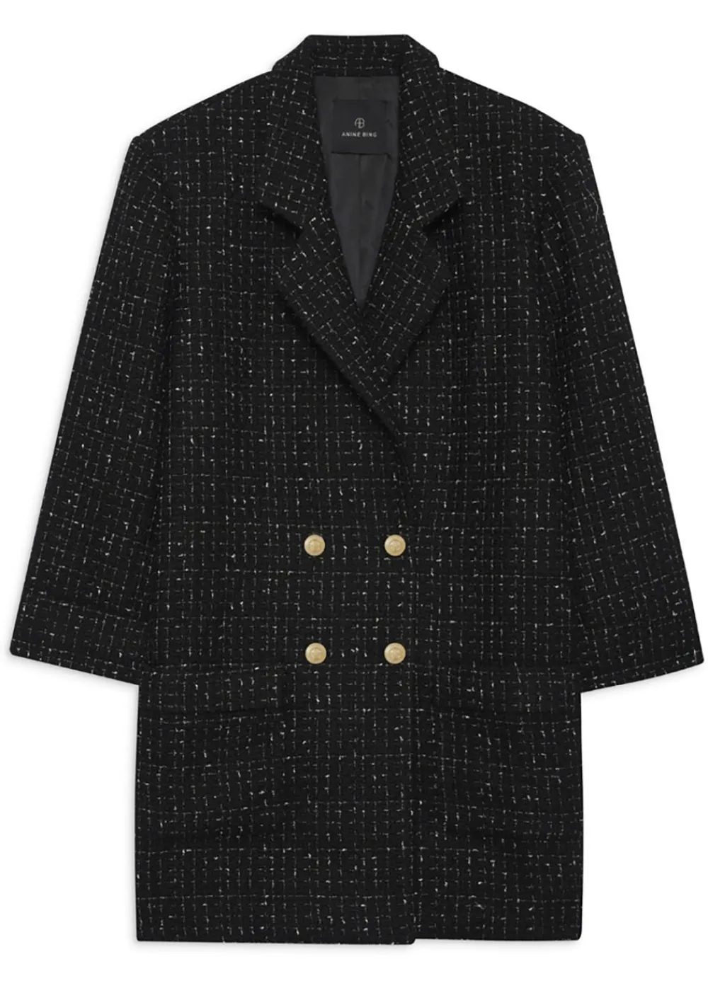 Die goldenen Knöpfe sorgen für ein luxuriöses Detail und brechen den stilvollen Tweed wunderschön auf, wodurch ein ebenso raffinierter wie auffälliger Look entsteht. Mit einer bequemen und schmeichelhaften Passform sorgt dieses Blazerkleid dafür, dass Sie von morgens bis abends gut aussehen. Das vielseitige Design macht es für das Büro ebenso geeignet wie für den Abend.