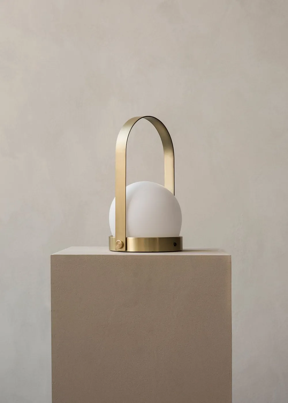 Carrie Tischleuchte, tragbar von . Diese tragbare Tischleuchte gilt als minimalistische Innovation für Freiheit und Vielseitigkeit. Die Tischleuchte besteht aus einem Sockel aus Metall oder Kunststoff und einem Glasschirm, der sich durch seine Vielseitigkeit auszeichnet. Die Lampe ist mit einem magnetischen Stecker an der Unterseite ausgestattet, der ein einfaches Aufladen ermöglicht.