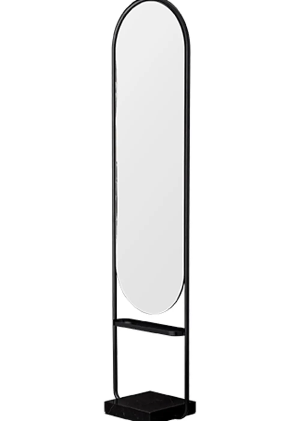 ANGUI Bodenspiegel von Danish ist ein einfacher und praktischer Spiegel aus pulverbeschichtetem Eisen. Der Spiegel hat ein kleines Marmorregal, das ihn ideal für den exemplarischen Eingang macht, wo Sie Ihre Schlüssel oder Ihren Kleiderschrank ablegen können, wo Sie Ihren Schmuck oder Ihre Parfums haben können.