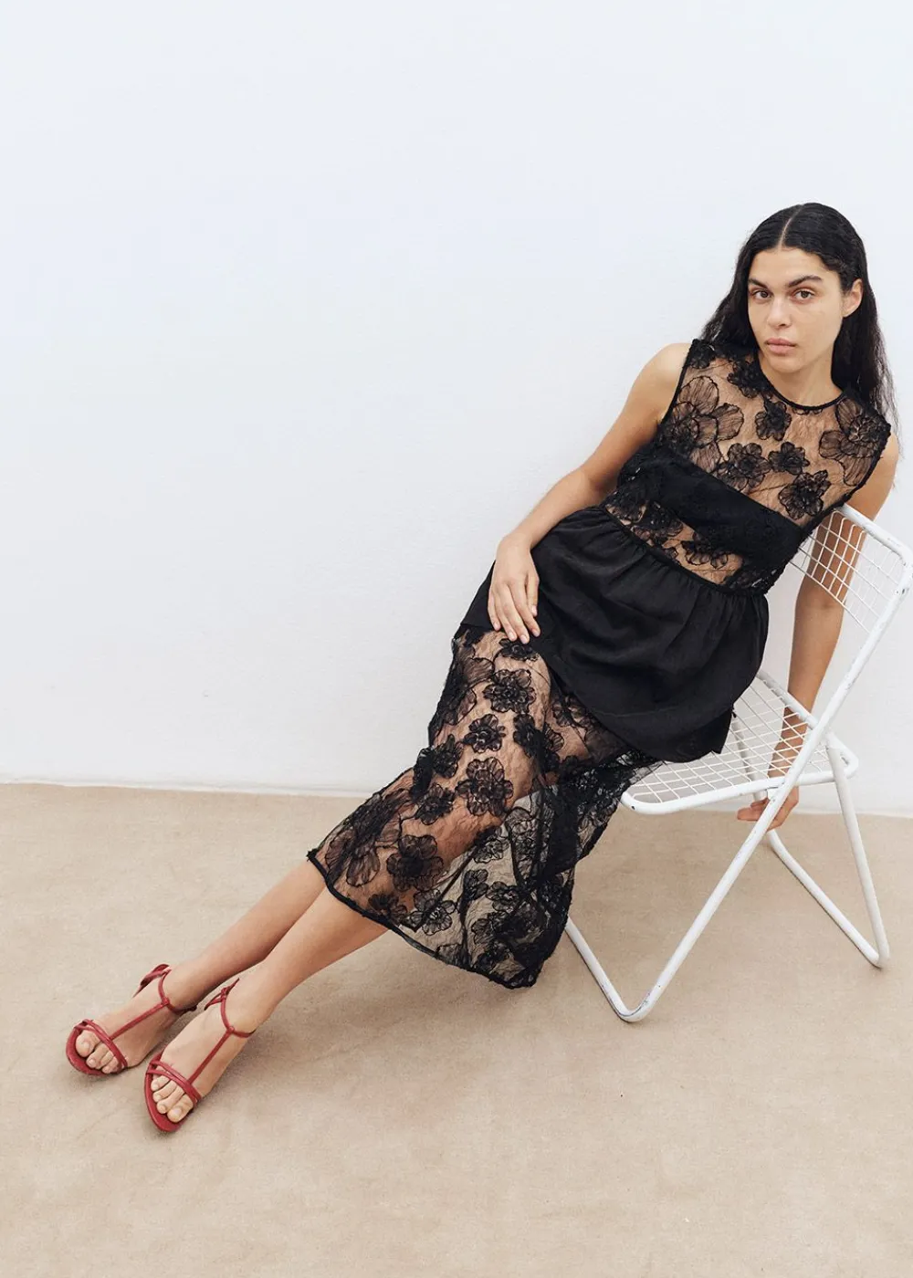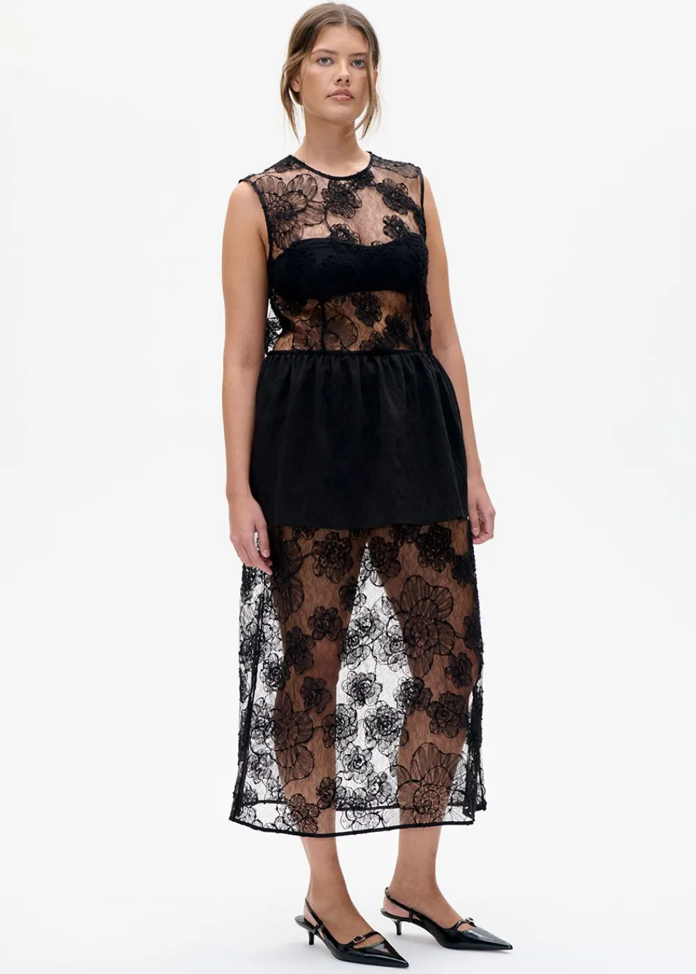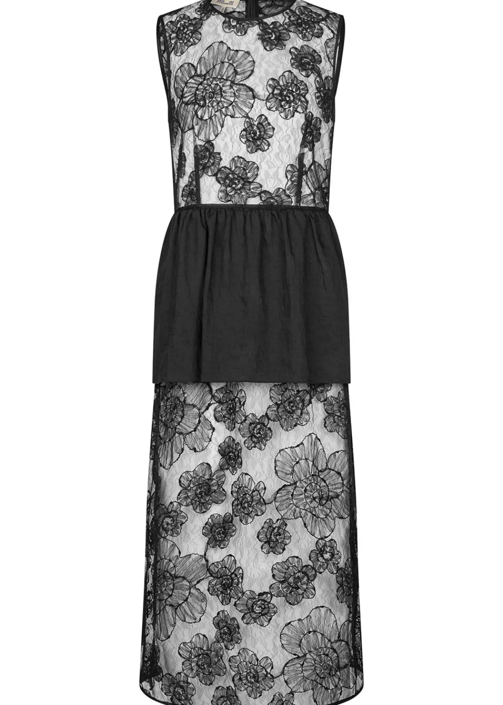 Das Kleid Antonie von vereint Romantik und Modernität in einem raffinierten Design. Die zarte Spitze mit floraler Stickerei schafft eine elegante Transparenz, während die strukturierte Lage an der Taille einen femininen und schmeichelhaften Schnitt verleiht. Das Kleid ist aus 100% Polyamid gefertigt.