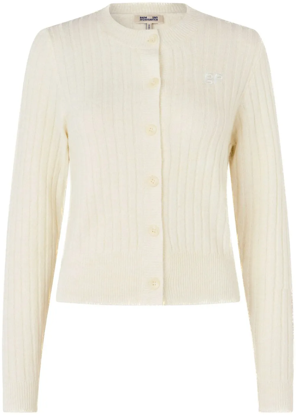 Die Strickjacke Cathie von ist in einem eleganten Rippstrick-Design mit einem luxuriösen Mix aus teilweise recycelten Materialien gefertigt. Der klassische Knopfverschluss, der Rundhalsausschnitt und die dezente Logostickerei auf der Brust sorgen für einen raffinierten und zeitlosen Look, der sich leicht in jede Garderobe integrieren lässt. Erhältlich in neutralen Farben, die sich leicht zu vielen verschiedenen Anlässen stylen lassen.