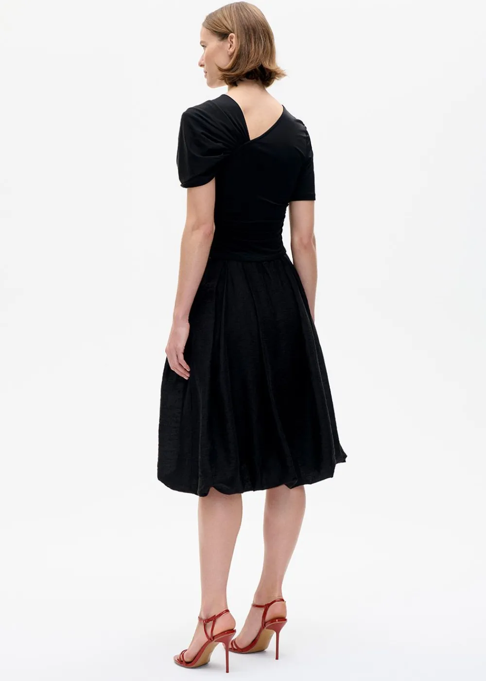 Die Bluse Jansje von verbindet klassische Eleganz mit modernen Details. Die asymmetrische Silhouette wird durch eine drapierte Schulter und eine formschöne Stoffrose betont, die einen femininen und raffinierten Akzent setzt. Der weiche, dehnbare Stoff sorgt für eine schmeichelhafte Passform, während die dezenten Rüschendetails die zeitlose Ästhetik der Bluse unterstreichen.