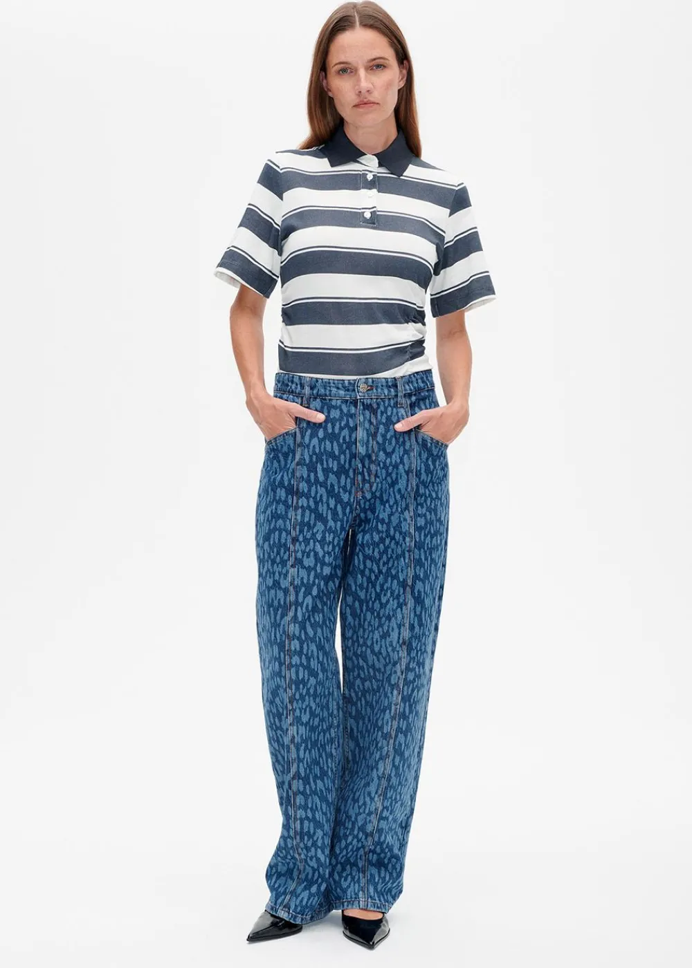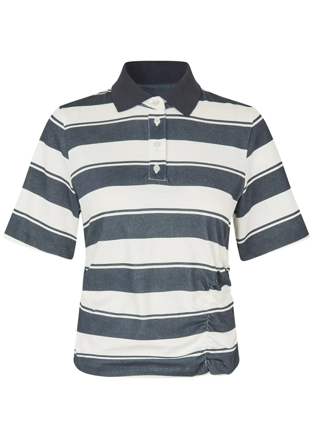 Das Judite Polo von bringt den klassischen, vom Sport inspirierten Stil in die moderne Garderobe. Das aus Bio-Baumwolle gefertigte Oberteil kombiniert breite Querstreifen mit einem eleganten Polokragen und feinen Details wie seitlichen Raffungen für einen femininen Touch.