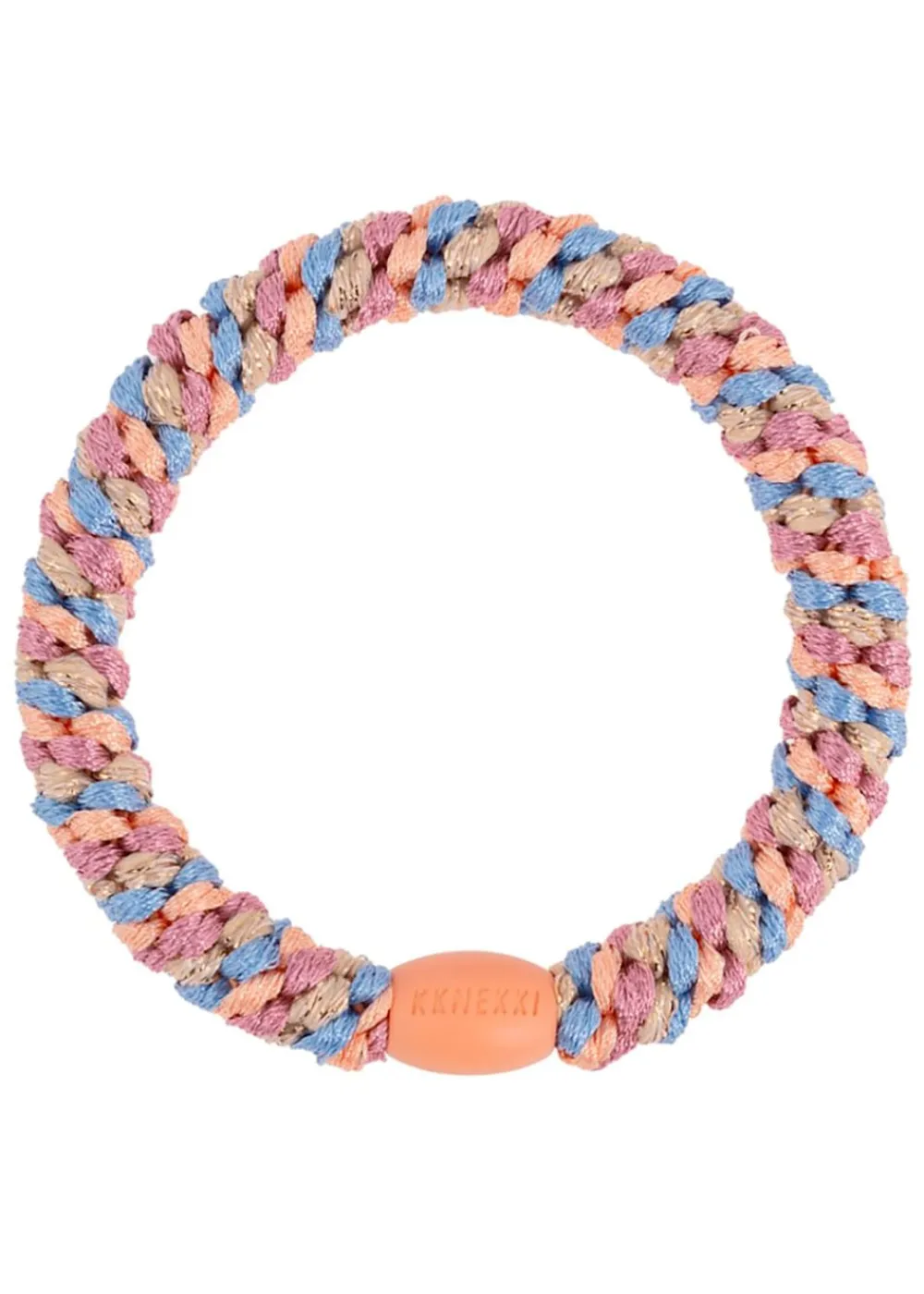 Die originalen Kknekki-Haargummis von . Die Gummis bestehen aus mehr als 60 Fäden, sind sowohl in der Stärke als auch in der Farbe extrem haltbar und halten sowohl Salzwasser als auch Sonne stand. Die Gummibänder sind sanft zum Haar und machen diese daher unglaublich beliebt. Und nicht zuletzt sind sie schön um das Handgelenk zu tragen, wenn sie nicht in den Haaren verwendet werden.