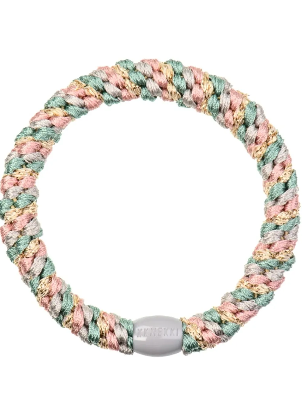 Die originalen Kknekki-Haargummis von . Die Gummis bestehen aus mehr als 60 Fäden, sind sowohl in der Stärke als auch in der Farbe extrem haltbar und halten sowohl Salzwasser als auch Sonne stand. Die Gummibänder sind sanft zum Haar und machen diese daher unglaublich beliebt. Und nicht zuletzt sind sie schön um das Handgelenk zu tragen, wenn sie nicht in den Haaren verwendet werden.
