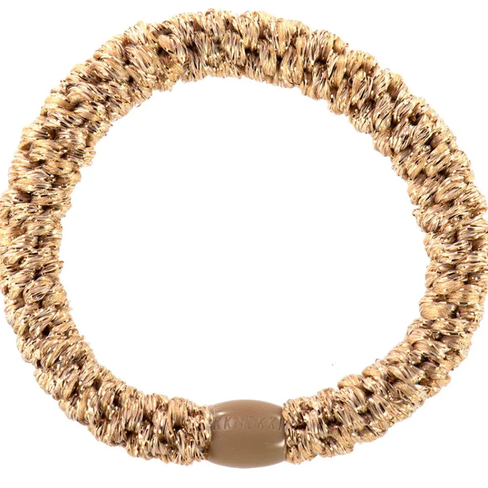 Die originalen Kknekki-Haargummis von . Die Gummis bestehen aus mehr als 60 Fäden, sind sowohl in der Stärke als auch in der Farbe extrem haltbar und halten sowohl Salzwasser als auch Sonne stand. Die Gummibänder sind sanft zum Haar und machen diese daher unglaublich beliebt. Und nicht zuletzt sind sie schön um das Handgelenk zu tragen, wenn sie nicht in den Haaren verwendet werden.