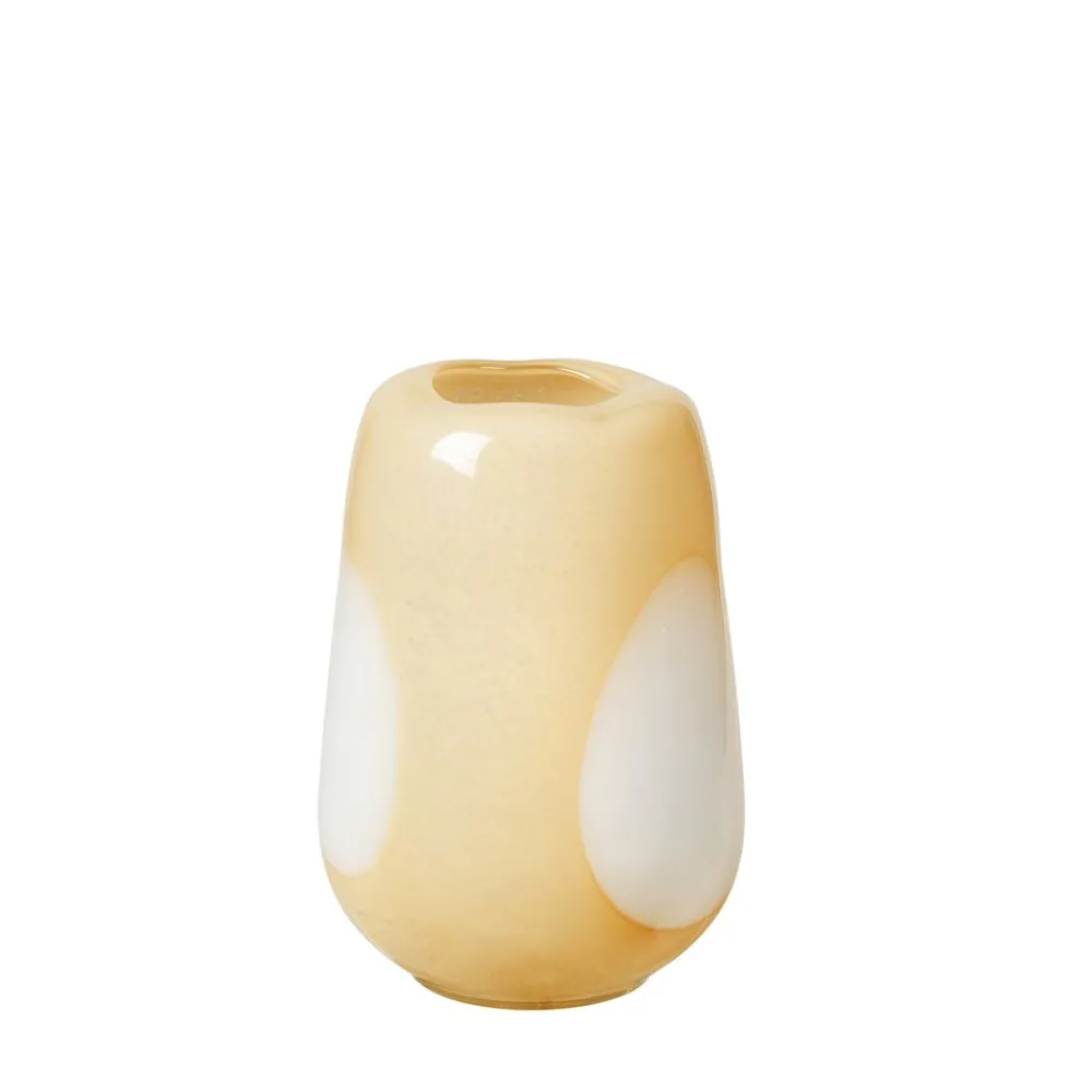 Die Ada-dot Vase von Broste copenhagen ist mit ihrer zarten, organischen Form ein Ausdruck des Talents, das die Glaskünstler, die sie geschaffen haben, besitzen. Der Look der Vase besteht aus fast flüssigen, undurchsichtigen Punkten, die sich über die Vase erstrecken und ihr einen sommerlichen Look verleihen.