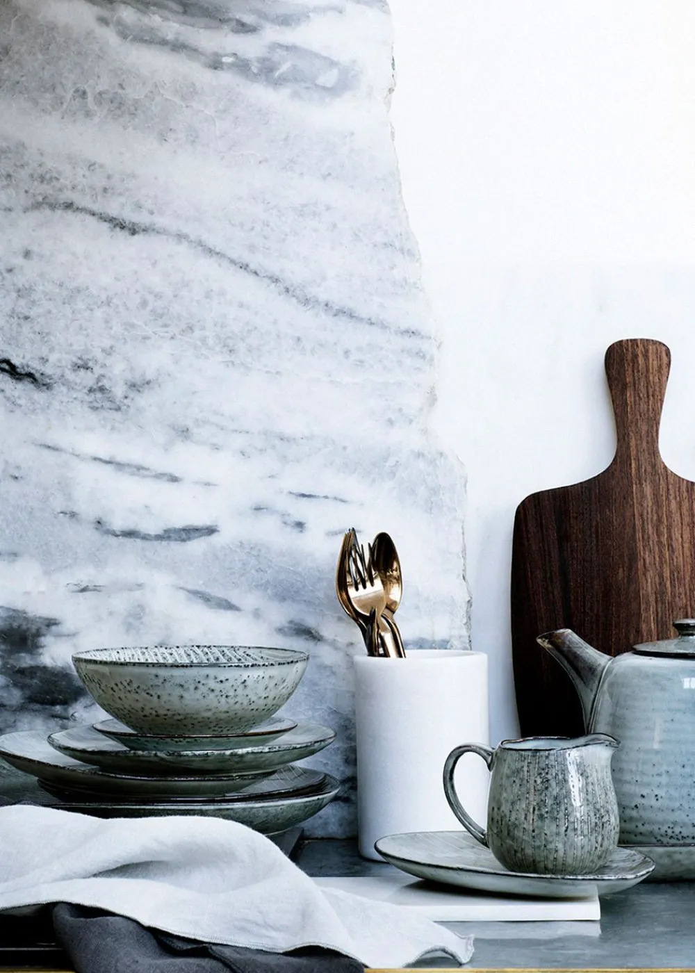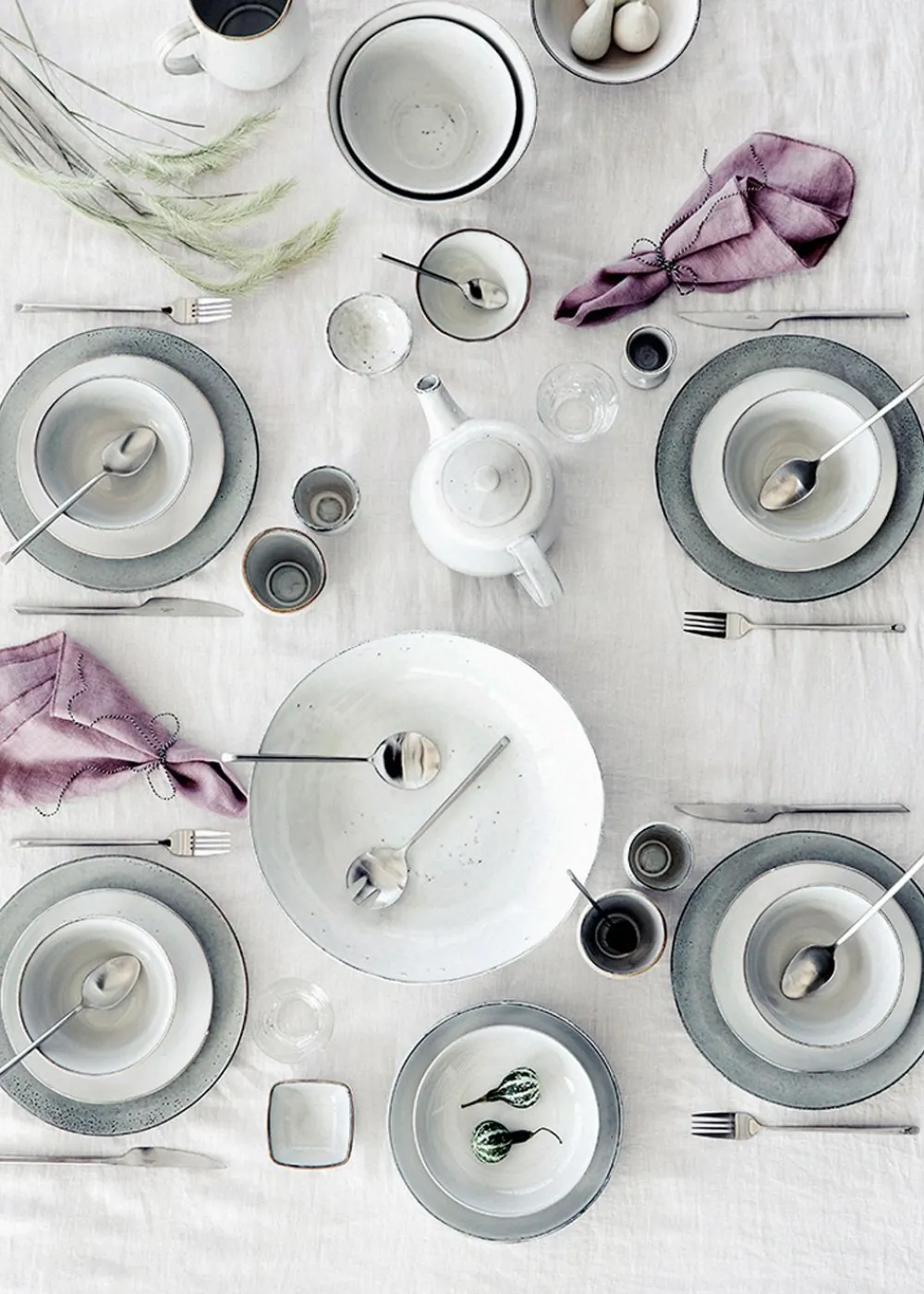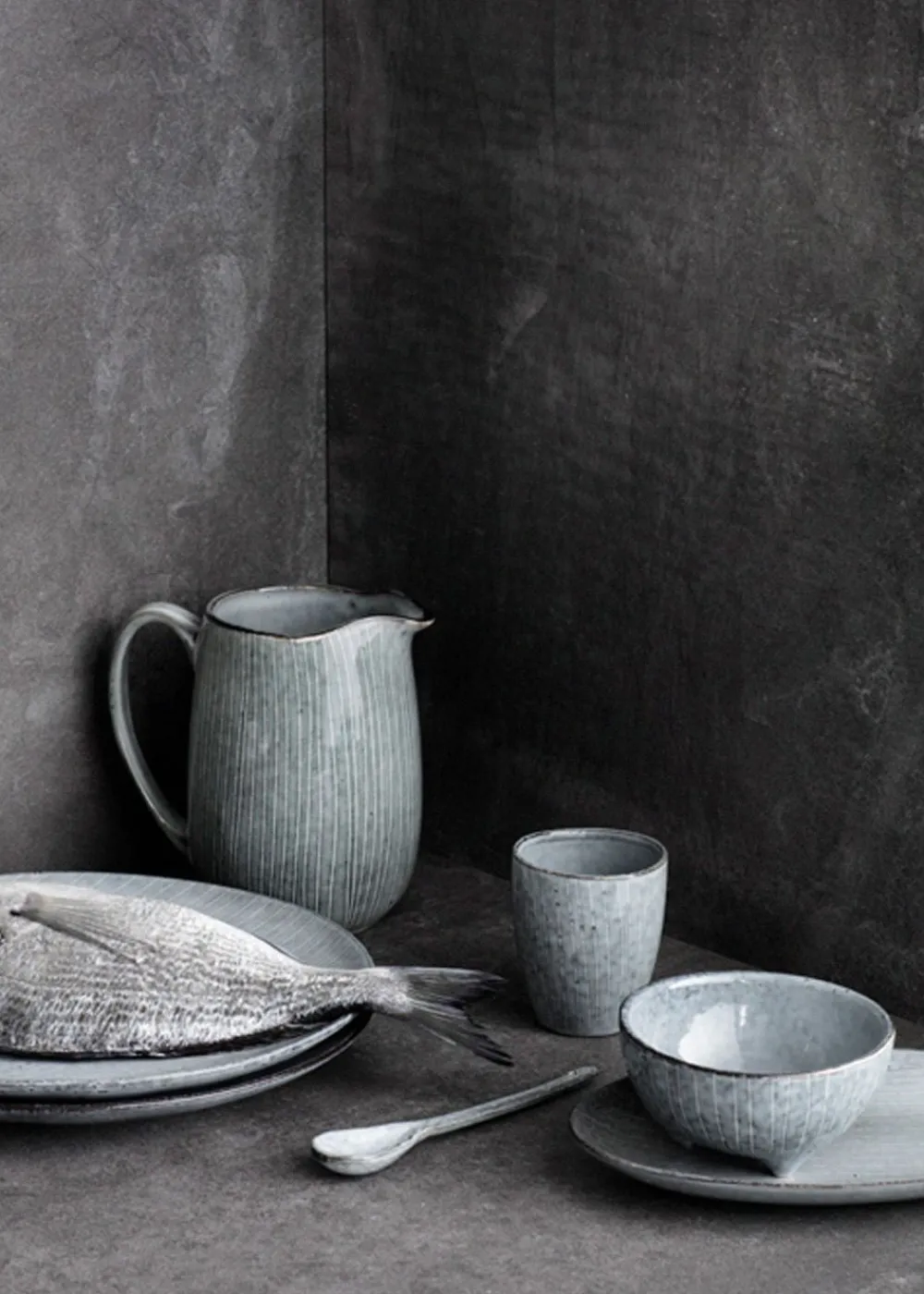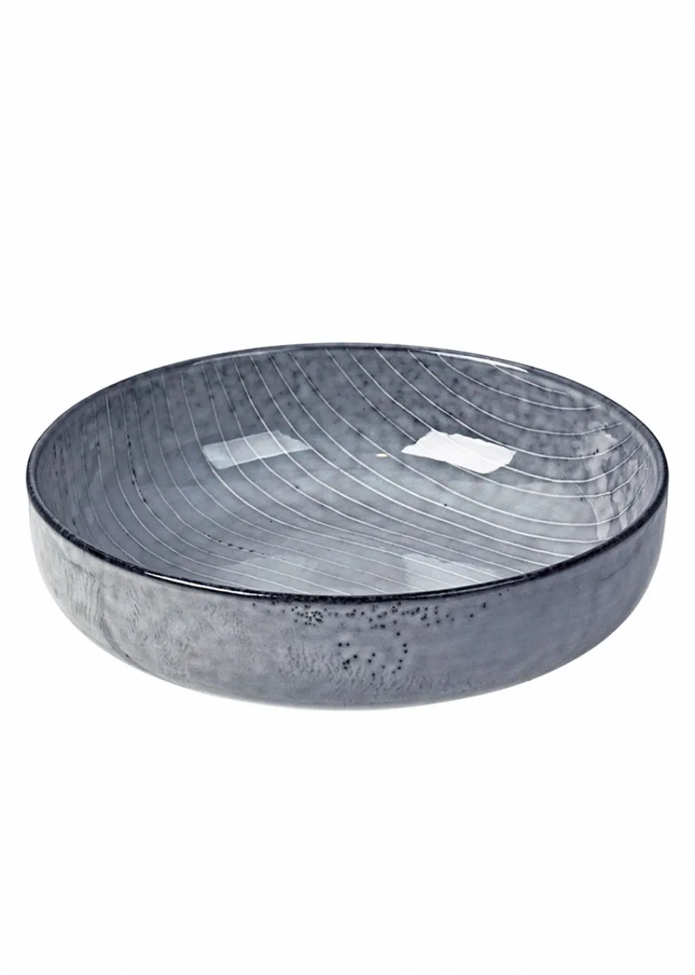 Eine einzigartige und organische Steingutserie von Broste Copenhagen, die von großen Salatschüsseln über feine Tapas bis hin zu funktionalen Alltagssets alles umfasst. Inspiriert von den nordischen Meeren und einem natürlichen Look, strahlt Nordic Sea mit seiner einzigartigen Glasur in Blautönen, rustikalen Linien und minimalistischer Handwerkskunst eine moderne Ästhetik aus. Nordic Sea eignet sich perfekt für den gedeckten Tisch, gemischt mit anderen Glas- und Keramikgegenständen.