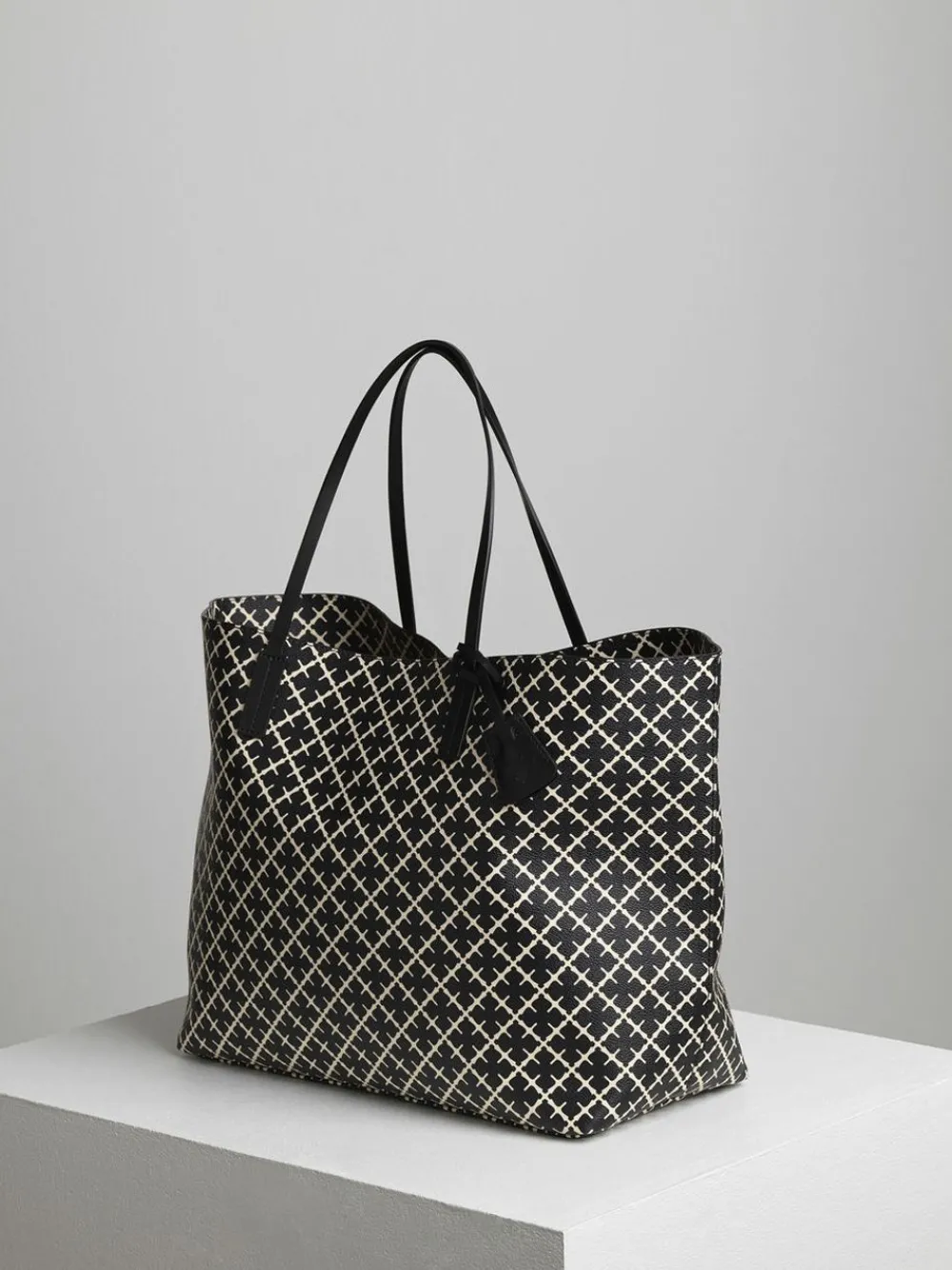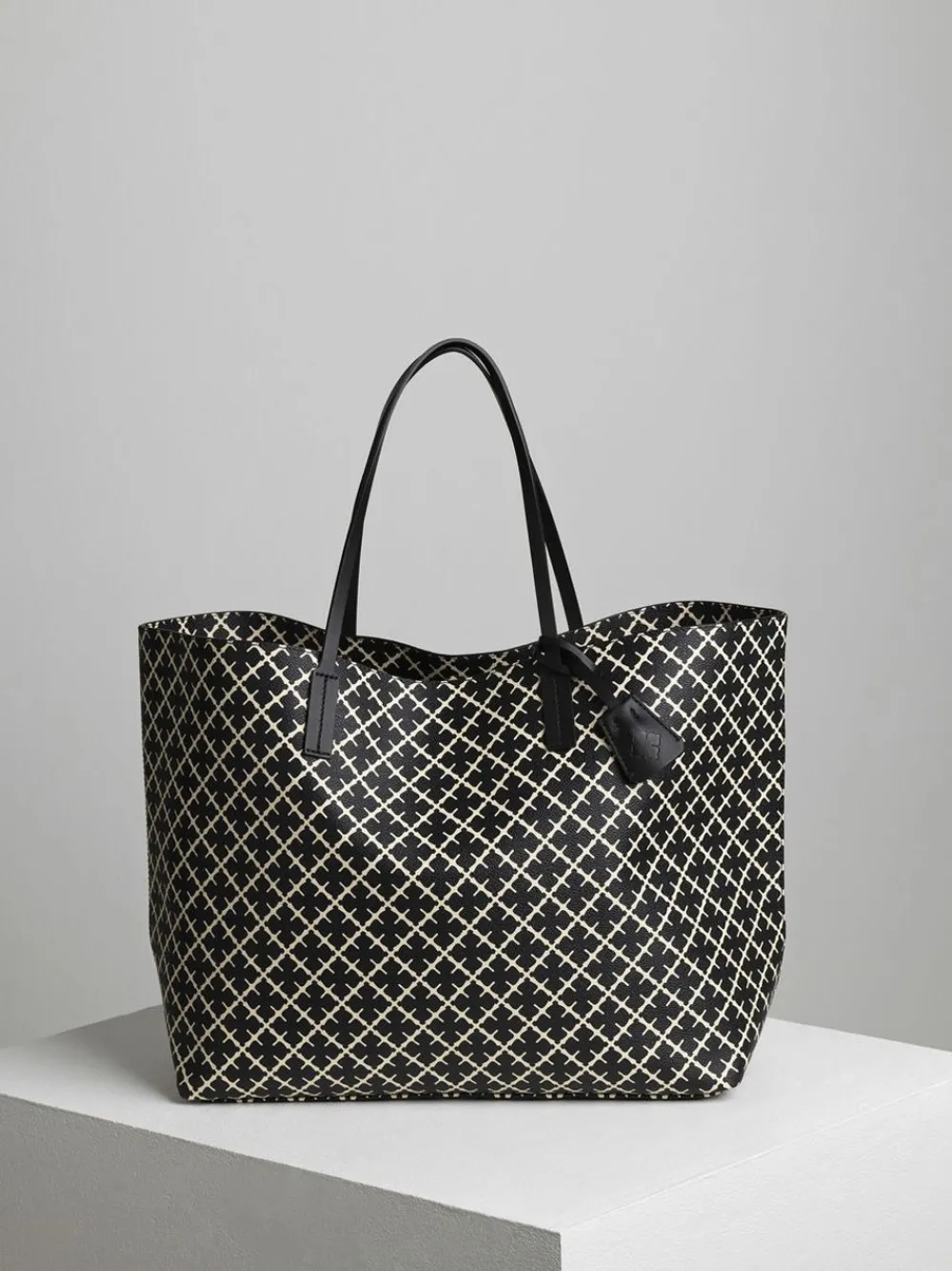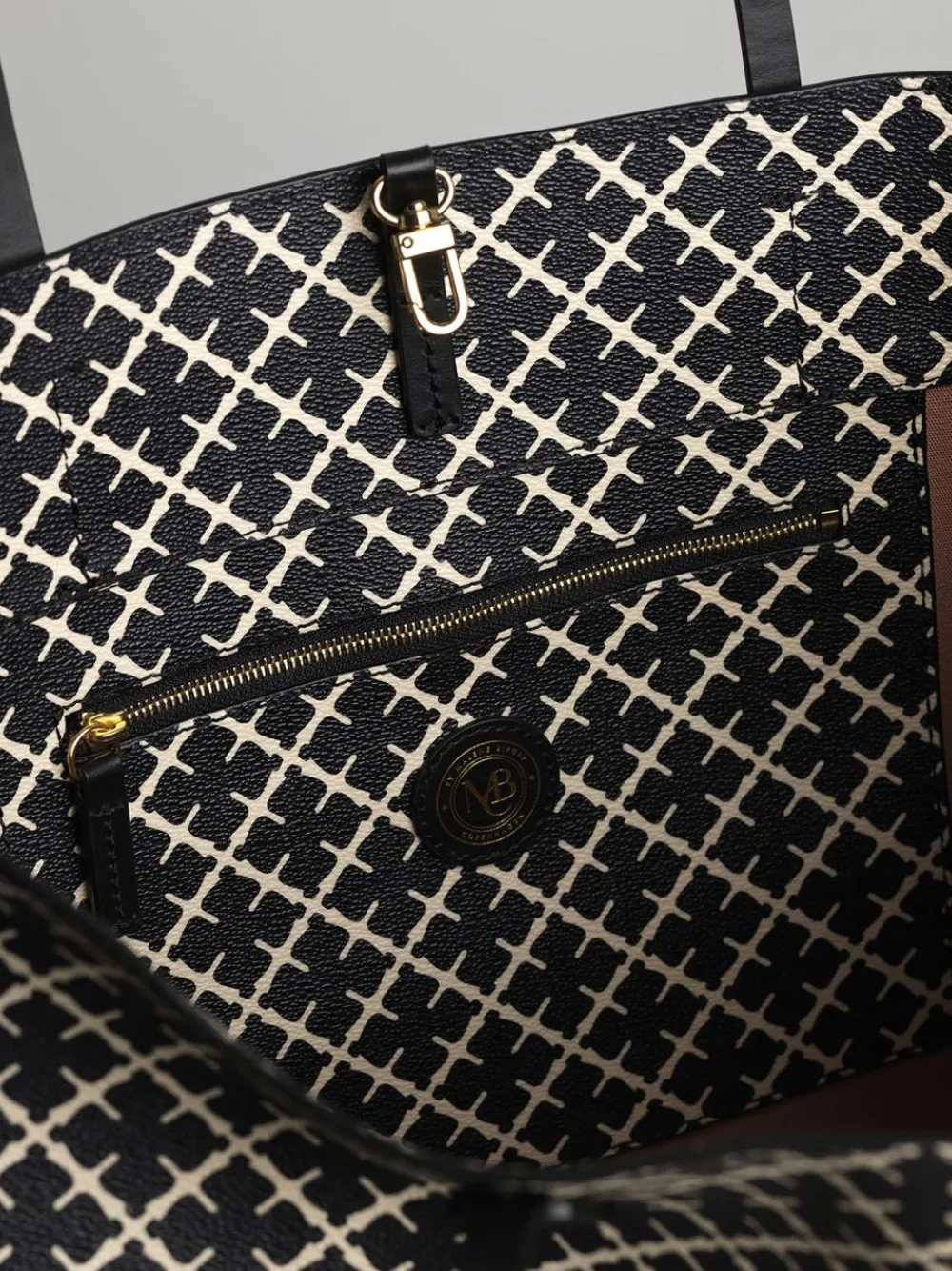 Klassischer Shopper im beliebten Signature Print und mit feinen Details mit Lederriemen, schönem pulverbeschichtetem Futter aus Baumwollsegeltuch und einem kleinen Extra-Platz am Boden. Auf Wunsch kann der Beutel mit einem Klappverschluss verschlossen werden.