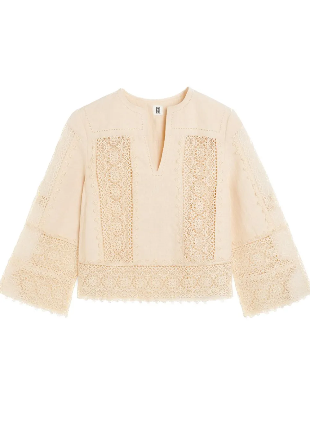 Die Bluse Donna von strahlt mit ihren zarten Spitzeneinsätzen und der locker sitzenden Silhouette böhmische Eleganz aus. Aus leichtem und atmungsaktivem Material gefertigt, sorgt die Bluse für einen angenehmen Tragekomfort, während der tiefe V-Ausschnitt und die Glockenärmel für einen femininen und raffinierten Touch sorgen.