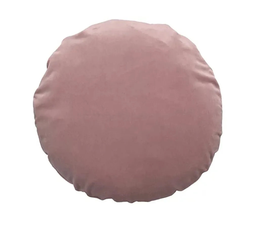 Das Kissen ist einfarbig und hat eine einzigartige runde Form.