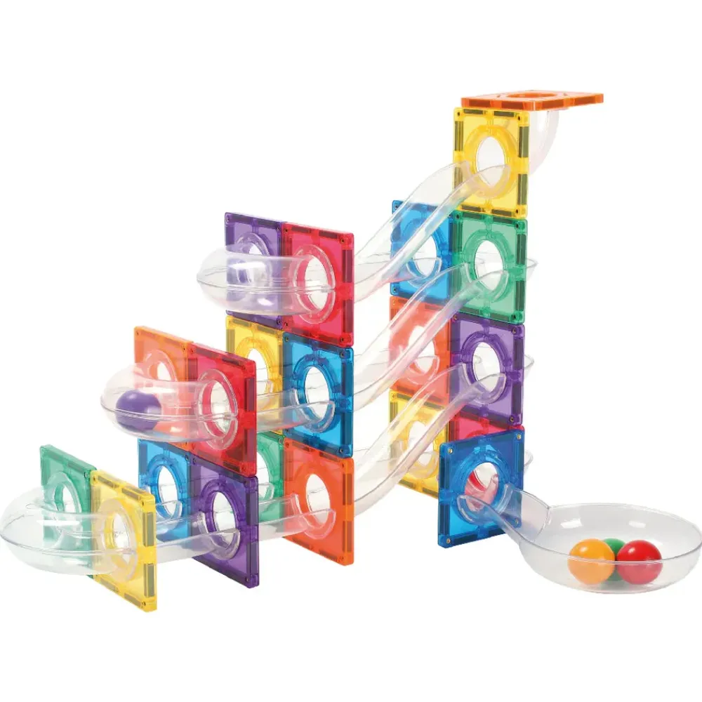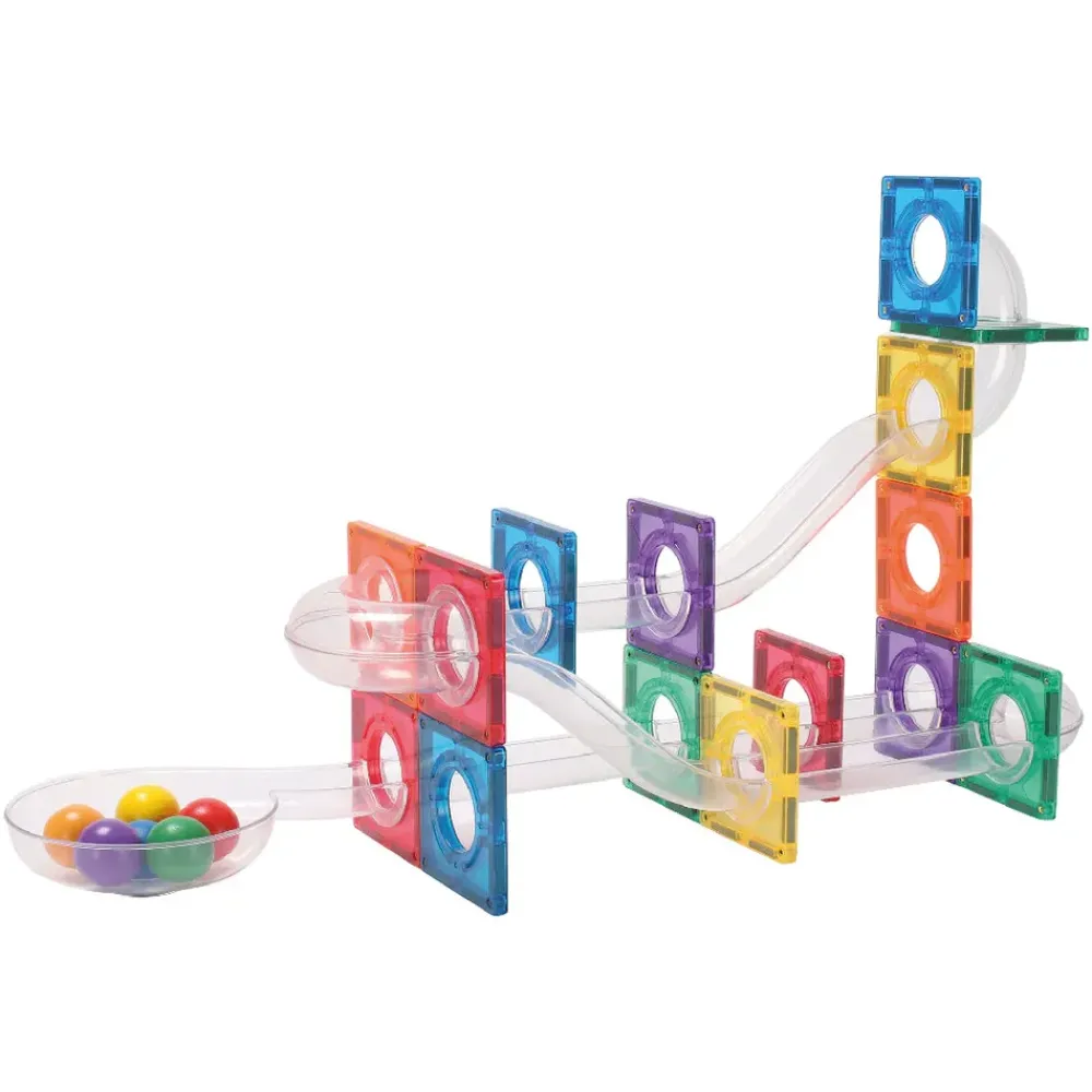 Bauen, balancieren und der Fantasie freien Lauf lassen mit dem Ball Run Compact Pack Intense von CleverClixx! Dieses 60-teilige magnetische Konstruktionsset bietet stundenlangen Spielspaß und ermöglicht es kleinen Händen, erstaunliche Kugelbahnen in einer Vielzahl von Formen und Ebenen zu schaffen. Dank der transparenten Tafeln können die Kinder den Weg des Balls verfolgen, während starke Magnete bei jeder Konstruktion für Stabilität sorgen.