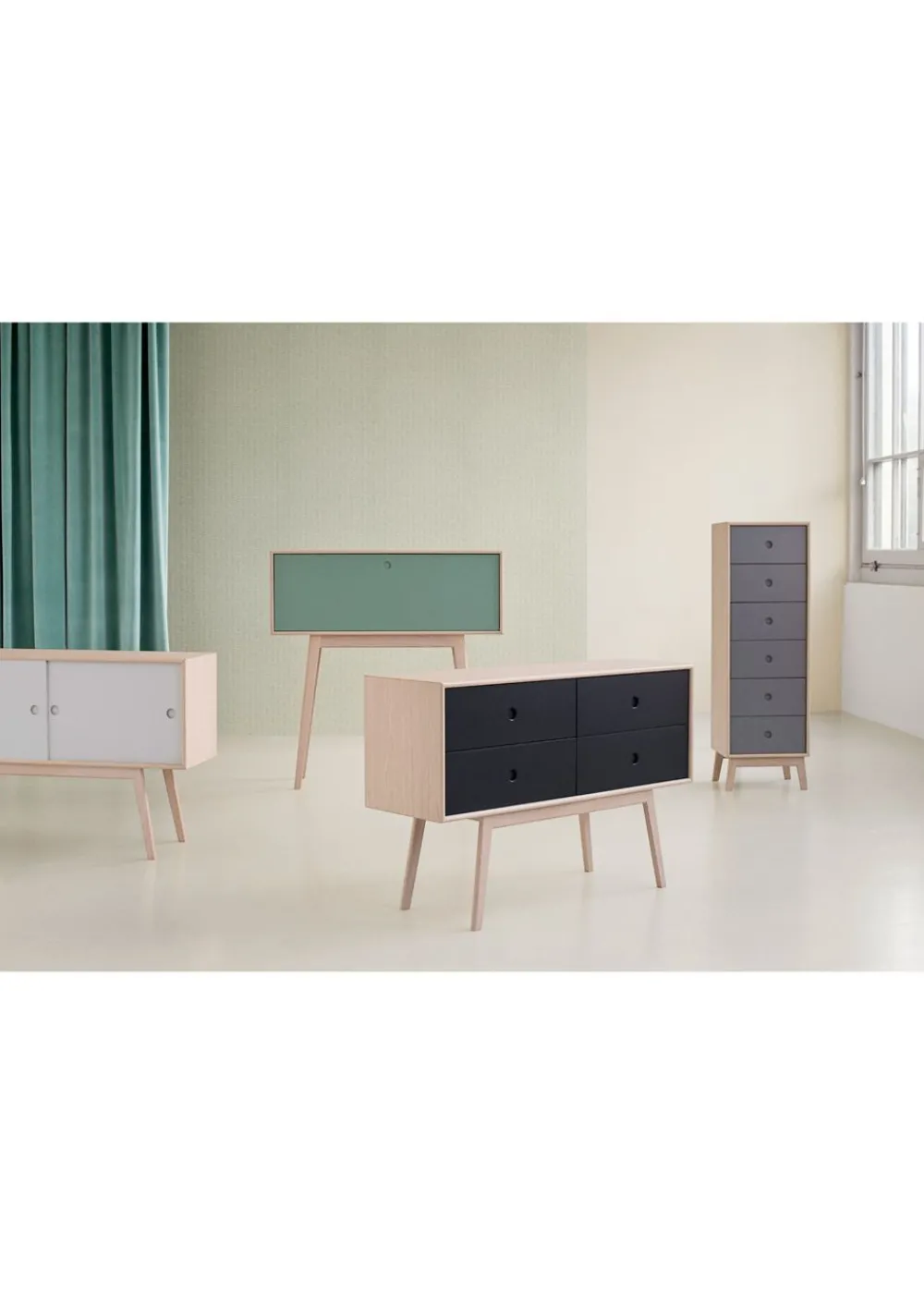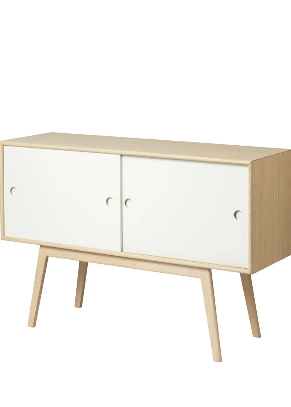 Das Butler Sideboard, entworfen von Foersom & Hiort-Lorenzen, ist die neue Interpretation des klassischen Sideboards von FDB Furniture. Die praktischen Schiebetüren und das minimalistische Design stehen für Funktionalität und nordisches Design. Das Sideboard ist perfekt für den schicken Service im Esszimmer oder als Fernseher im Wohnzimmer mit Platz für verschiedene Elektronik in den Schränken.