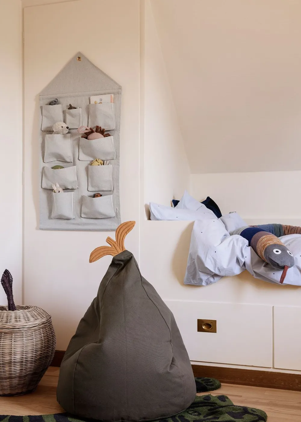 Med sin søde, lille pæreform gør sækkestolen frugter til en del af det sjove på børneværelset. Med et ydre af økologisk bomuld og et indre fyldt med flamingo udgør sækkestolen en komfortabel siddeplads til læsning, eller måske kan den være en ny, sjov legekammerat?