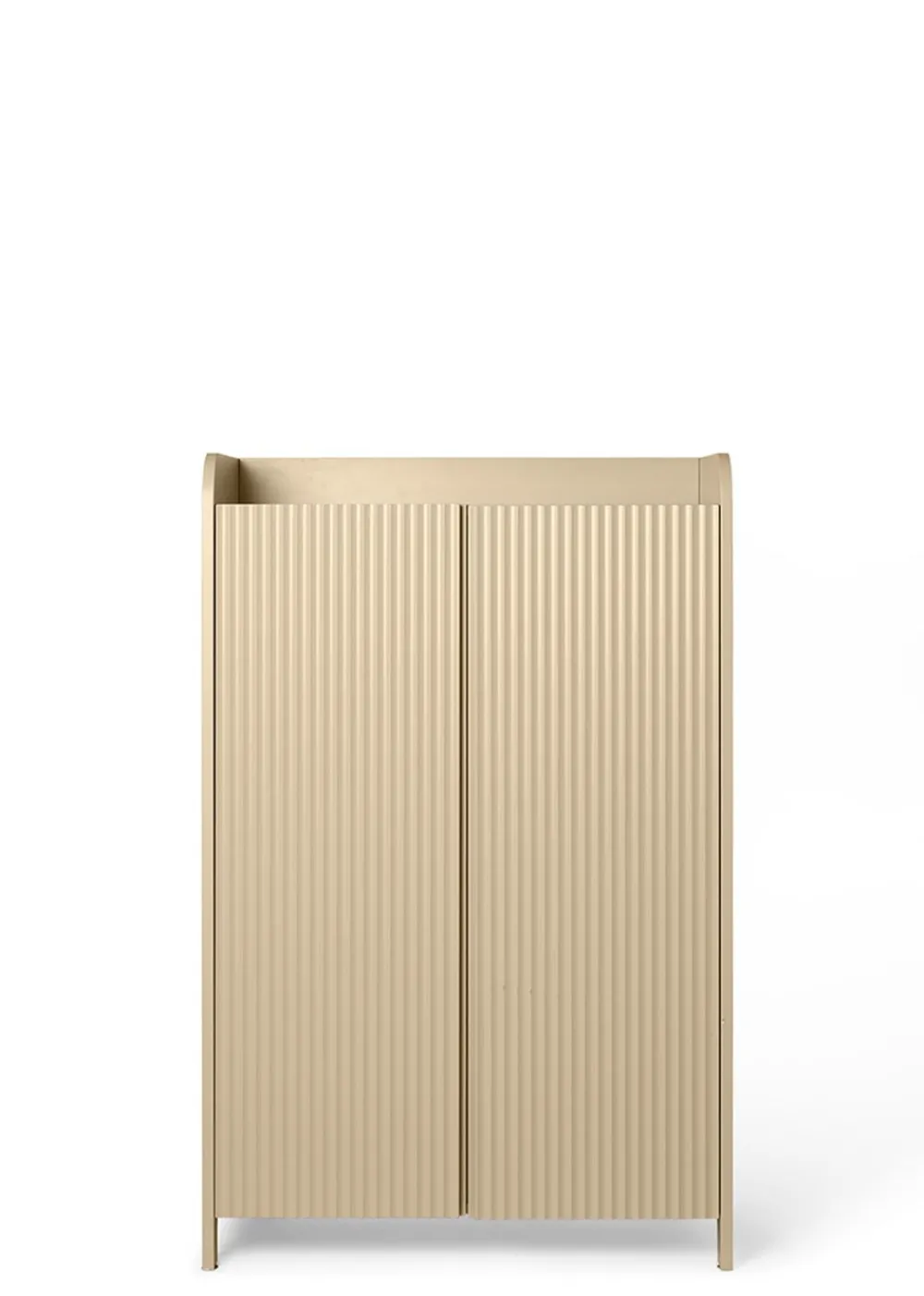 Der Sill Cupboard von zeichnet sich durch seine abgerundeten Details, wie die gerillten Türen und die weichen Kanten, aus. Der Schrank bietet reichlich Stauraum, ob im Wohnzimmer, im Bad oder im Flur, wo die Schrankoberseite hohe Kanten hat, die es Ihnen ermöglichen, Ihre liebsten Dekoartikel zu präsentieren.