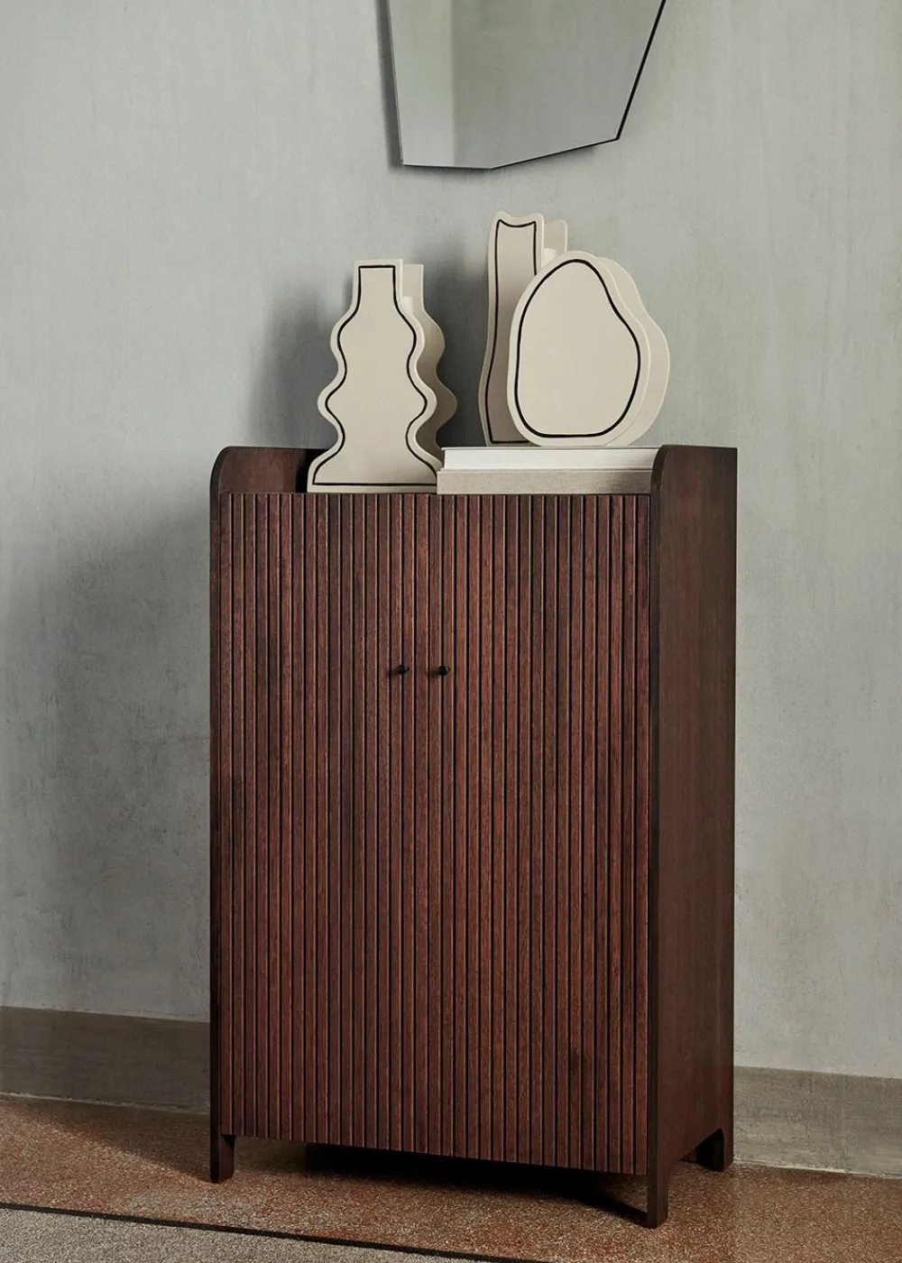 Der Sill Cupboard von zeichnet sich durch seine abgerundeten Details, wie die gerillten Türen und die weichen Kanten, aus. Der Schrank bietet reichlich Stauraum, ob im Wohnzimmer, im Bad oder im Flur, wo die Schrankoberseite hohe Kanten hat, die es Ihnen ermöglichen, Ihre liebsten Dekoartikel zu präsentieren.