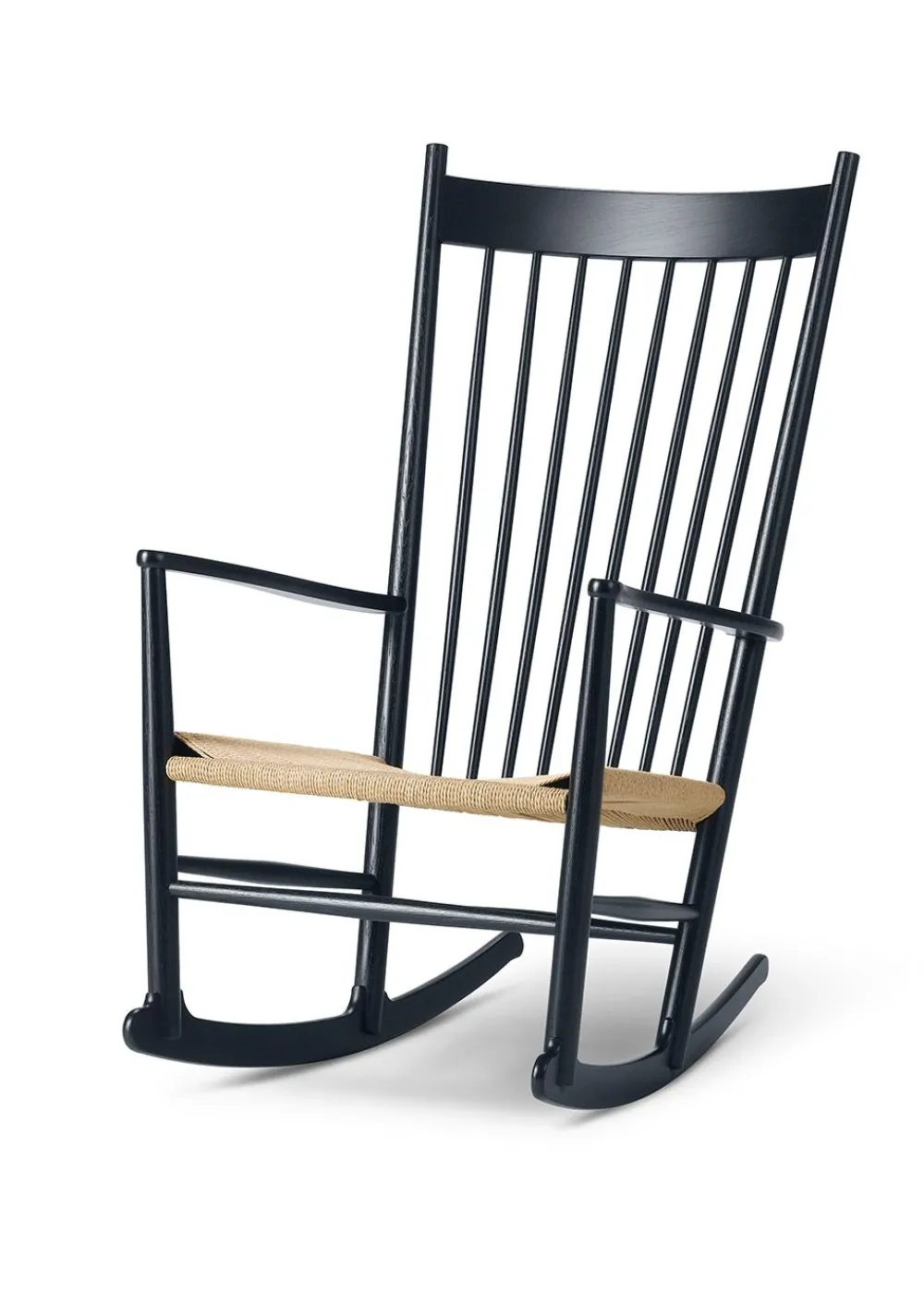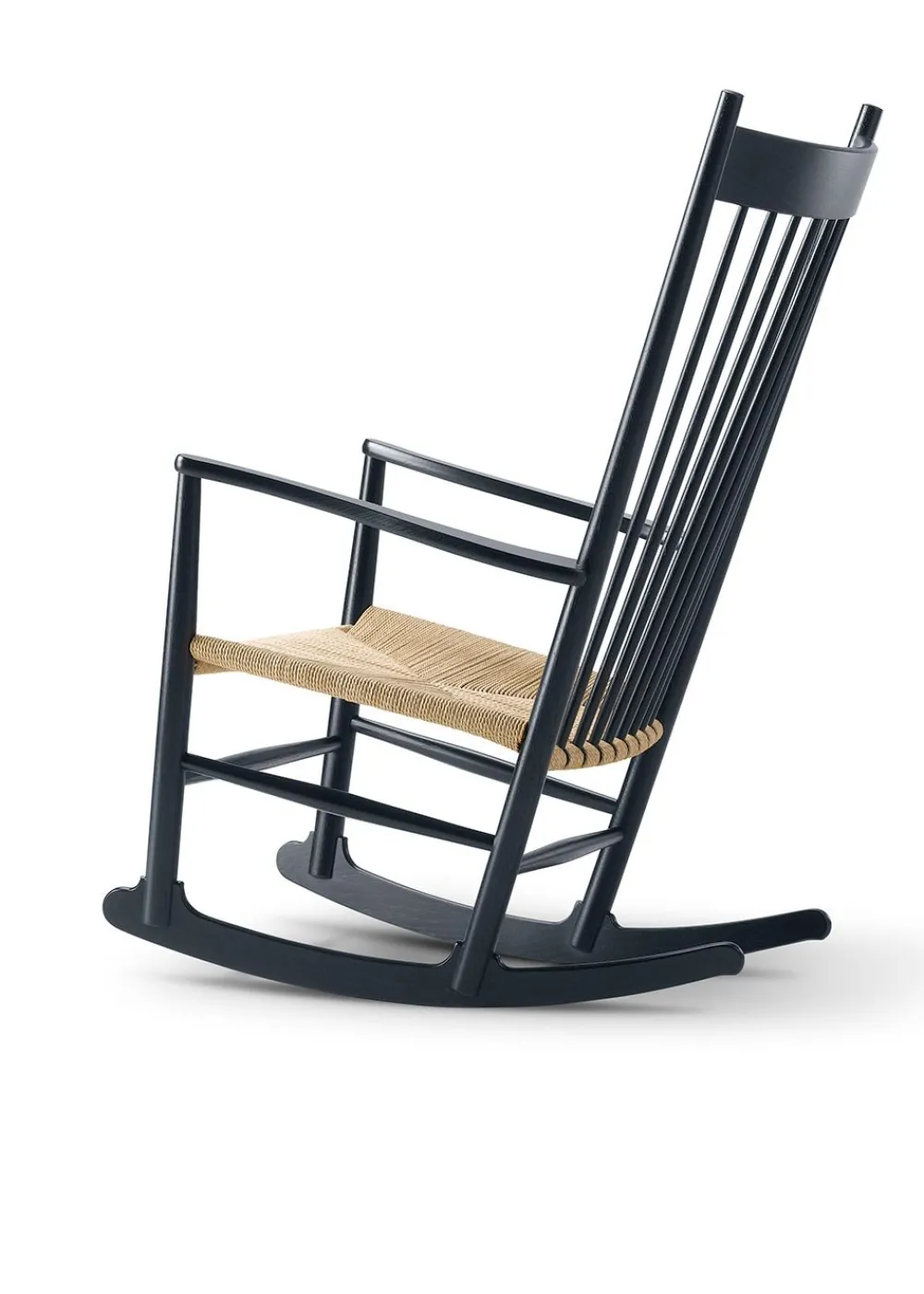 Der Schaukelstuhl J16″ ist eines der vielen Möbelstücke, die sich in Wegners Kollektion als echte Klassiker erweisen. Der Schaukelstuhl als Möbeltyp weckte schon früh Wegners Interesse, was einer der Gründe dafür war, dass der „J16“ einer der ersten Stühle war, die von Wegner in Produktion gingen. Das ikonische Möbelstück, das 1944 zum ersten Mal hergestellt wurde, feiert sein 75-jähriges Bestehen auf dem Markt, was mit einer Präsentation des Stuhls bei gefeiert wird. Bis dahin wurde der Schaukelstuhl in der Produktion angepasst, um das Herstellungsverfahren so weit wie möglich zu vereinfachen, ohne die exklusive Qualität zu beeinträchtigen. Und genau diese Qualität gewährleistet mit seiner exquisiten Tischlerei, die die Originalität der Möbel einschließt. In den 1950er Jahren war dunkles Holz für dänische Möbel besonders charakteristisch, was sich auch in der Neueinführung widerspiegelt, aber passend zur neuen Zeit ist der Schaukelstuhl jetzt auch in heller Eiche und warmem Nussbaum erhältlich.