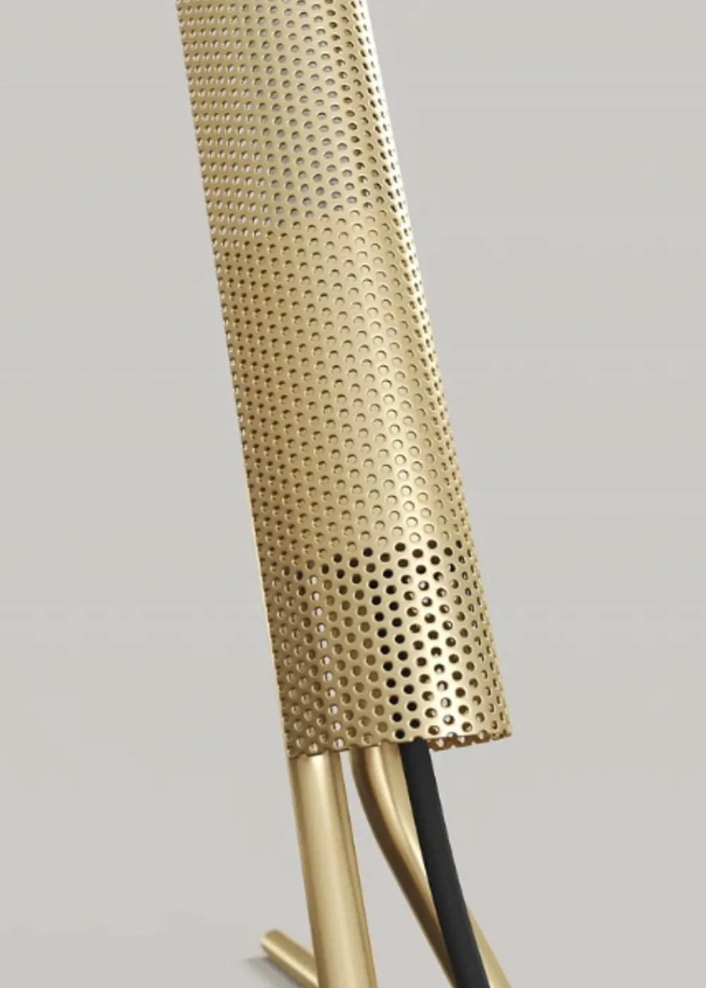 Die Radent Stehleuchte besteht aus einer Standard-LED-Leuchtstoffröhre und kann sowohl direktes Licht als auch dezentes Licht spenden. Das Stahlgeflecht der Leuchte Radent sorgt für eine sanfte Beleuchtung. Die Stehleuchte Radent ist nur in einer Größe und in den Farben Schwarz, Weiß oder Messing erhältlich.