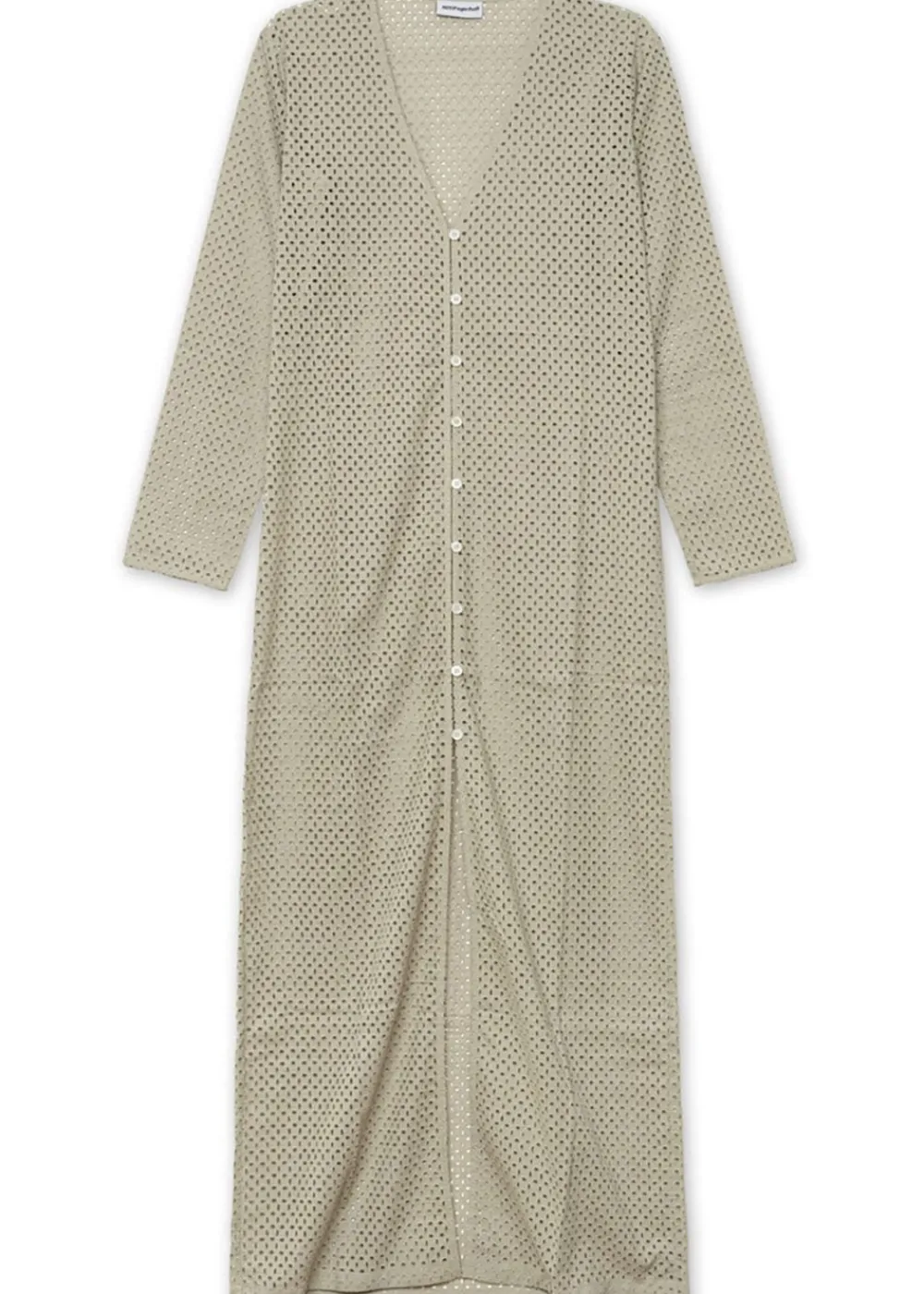 Der Summer Cardigan von ist eine leichte und elegante Strickjacke in Form eines langen Kleides mit zartem Spitzenmuster. Mit seiner luftigen Struktur und dem langen Schnitt verleiht er jedem Outfit eine raffinierte, feminine Note. Die knöpfbare Vorderseite ermöglicht es Ihnen, ihn sowohl offen als auch geschlossen zu tragen, so dass Sie den Look je nach Bedarf anpassen können.
