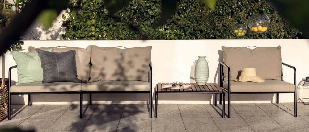 Die AVON-Kollektion wurde mit dem Wunsch entworfen, etwas mit einem sehr leichten Aussehen und einem niedrigen schlanken Profil zu schaffen und dabei einen hohen Komfort zu erhalten. Das wartungsfreie Gestell und die Konstruktion der großen weichen Rückenkissen ist genau das – die Einfachheit der Struktur, bei der niedrige Linien dafür sorgen, dass das Design immer stolz aussieht, sowohl mit als auch ohne Kissen – Sommer oder Winter.