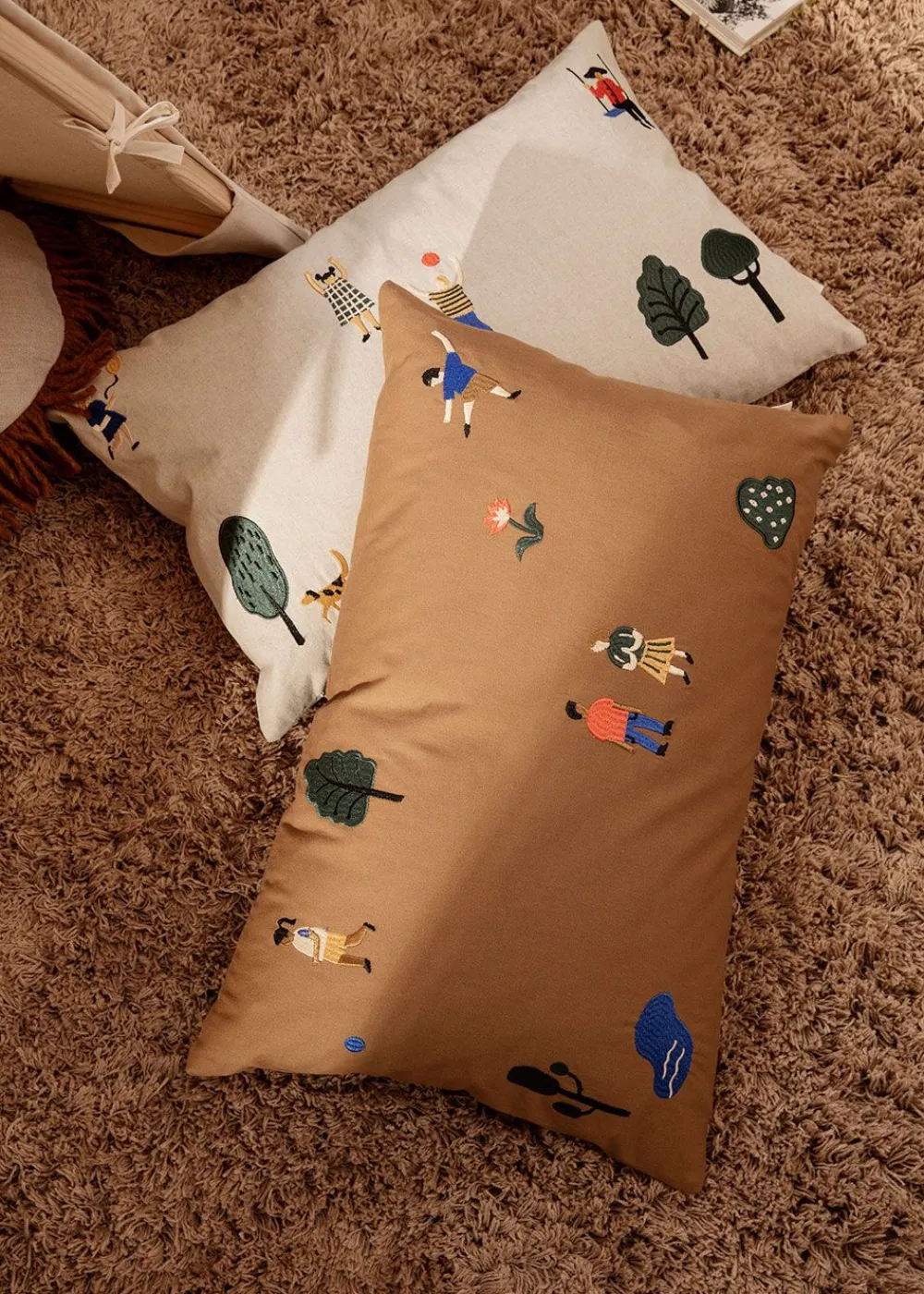 Dieses lustige und aufregende Kissen von ist ein großartiger Ort für müde Köpfchen, um sich nach einem langen Tag auszuruhen. Das Kissen ist mit kleinen Figuren bestickt, die man sich vorstellen kann, wenn man einen lustigen Tag im Park verbringt. Das Kissen ist aus unbehandelter, 100% GOTS-zertifizierter Bio-Baumwolle hergestellt. Dies macht das Kissen weich und bequem und verleiht ihm ein elegantes Aussehen.