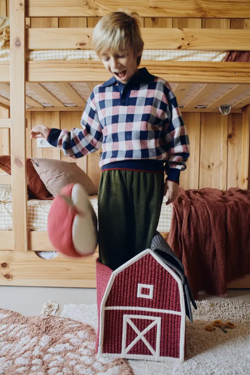 Der Korb eignet sich perfekt für die Aufbewahrung von Spielzeug bis hin zu Decken und vereint Stil und Zweckmäßigkeit. Verwenden Sie ihn im Wohnzimmer für eine gemütliche, ländliche Atmosphäre oder als Teil eines Kinderzimmers für eine spielerische und organisierte Einrichtung. Er lässt sich wunderbar mit Naturtextilien, Holzmöbeln und sanften Farbtönen kombinieren und sorgt für ein harmonisches Gesamtbild.