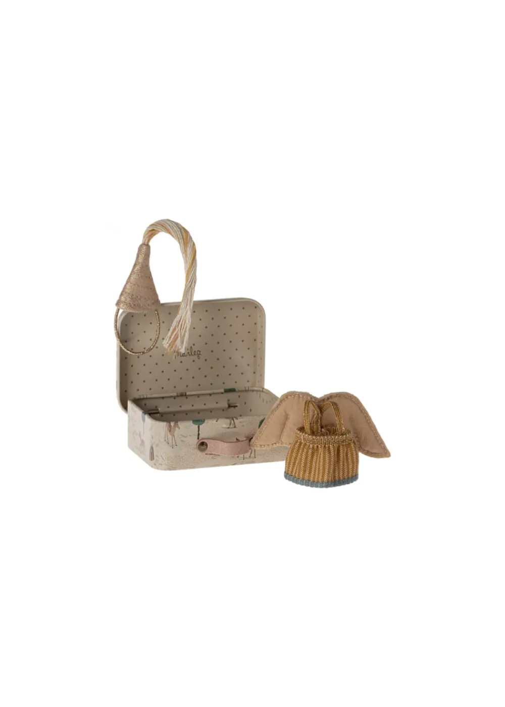 Verleihen Sie Ihrer kleinen Schwestermaus ein zauberhaftes Makeover mit den „Fairy Clothes in Suitcase“ von . Dieses bezaubernde Set ist mehr als nur Kleidung, es ist die Eintrittskarte in eine Welt voller Fantasie und Abenteuer für Ihr Kind. In einem entzückenden kleinen Metallkoffer befindet sich ein verträumtes Feen-Set, bestehend aus einem Rock, der leicht wie eine Sommerbrise schwebt, glitzernden Flügeln, die Magie verbreiten, und einem Hut, der das Ganze abrundet. Jedes Teil wurde mit viel Liebe zum Detail entworfen, damit deine kleine Schwestermaus bezaubernd aussieht und bereit ist für Abenteuer, wohin auch immer ihre Fantasie sie führt.