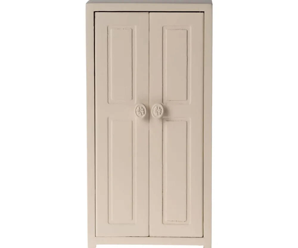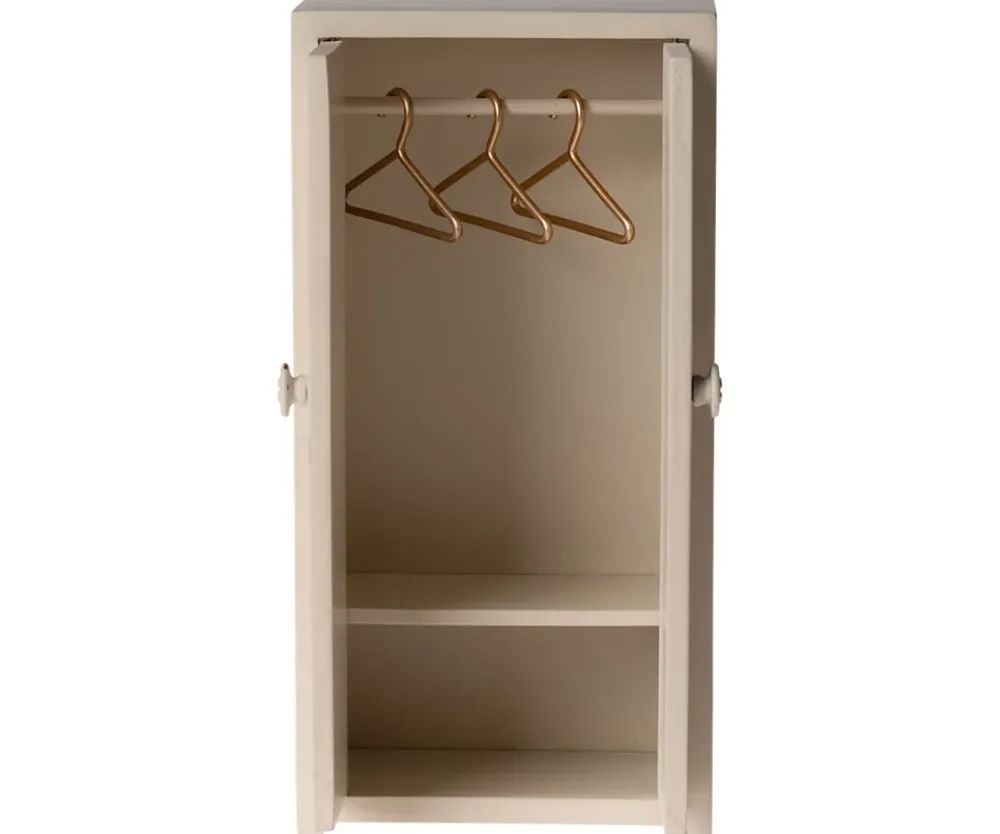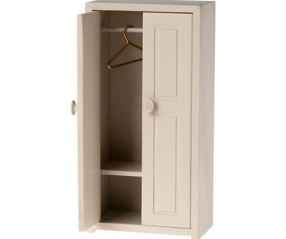 Die Garderobe von ist ein kleines Schmuckstück, in dem die schönsten Mäusekostüme aufbewahrt werden können. Das charmante Design mit zwei klassischen Türen und kleinen runden Griffen ist perfekt für kleine Hände, die gerne erkunden. Der Schrank ist aus Holz gefertigt und in sanften Farben lackiert, die jede Spielecke verschönern werden. Im Inneren befinden sich drei goldene Kleiderbügel, an denen die Kleidung der Mäuse aufgehängt werden kann, bereit für jedes Spiel und Abenteuer.