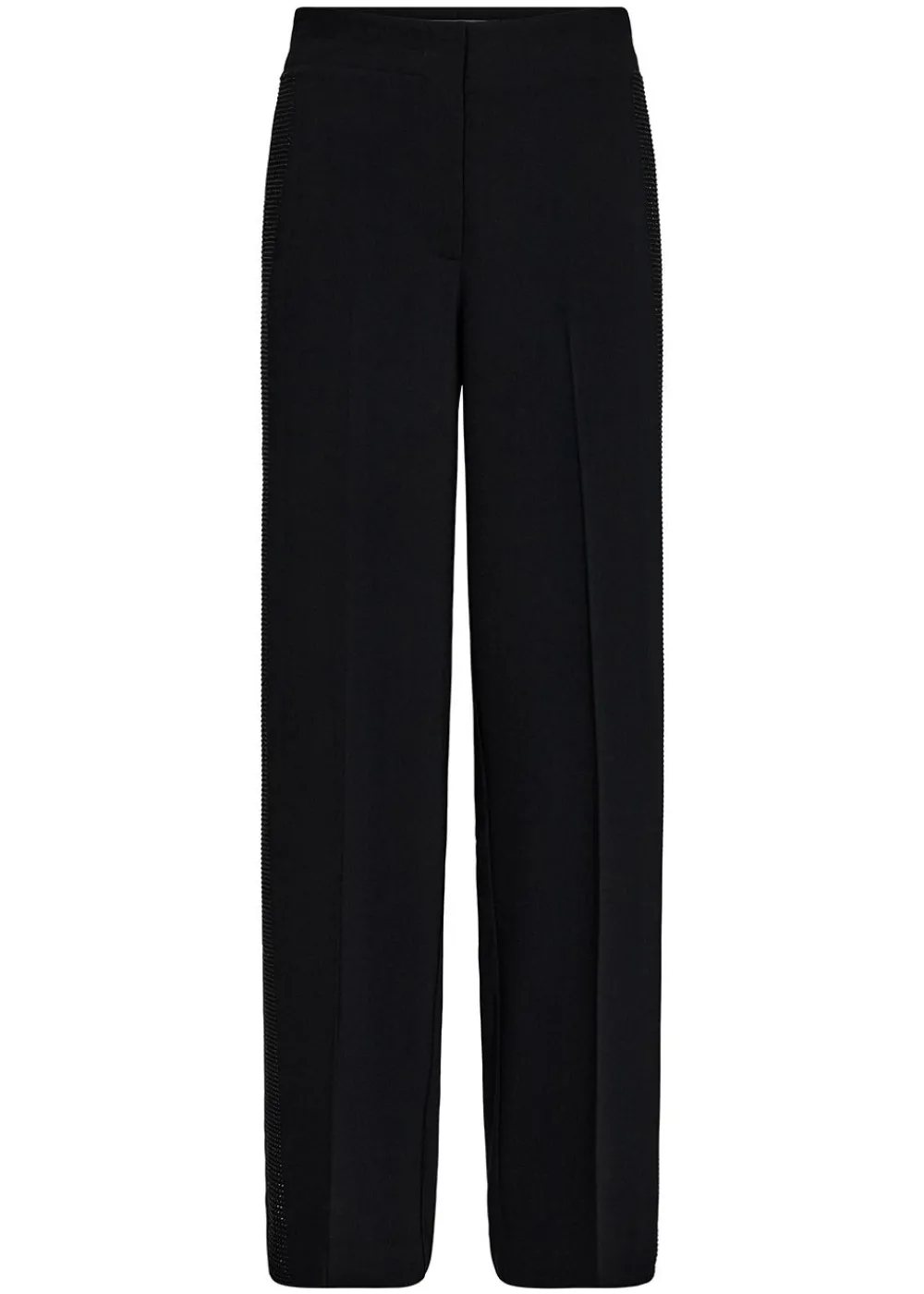 Diese elegante Hose von ist die perfekte Wahl für alle, die ihrer Garderobe einen Hauch von Glamour verleihen möchten. Die klassische schwarze Farbe der Hose kombiniert mit Glitzersteinen an den Seiten sorgt für einen raffinierten und luxuriösen Look, der sie sowohl für festliche Anlässe als auch für eine stilvolle Nacht geeignet macht.