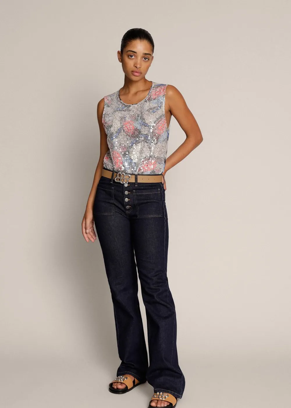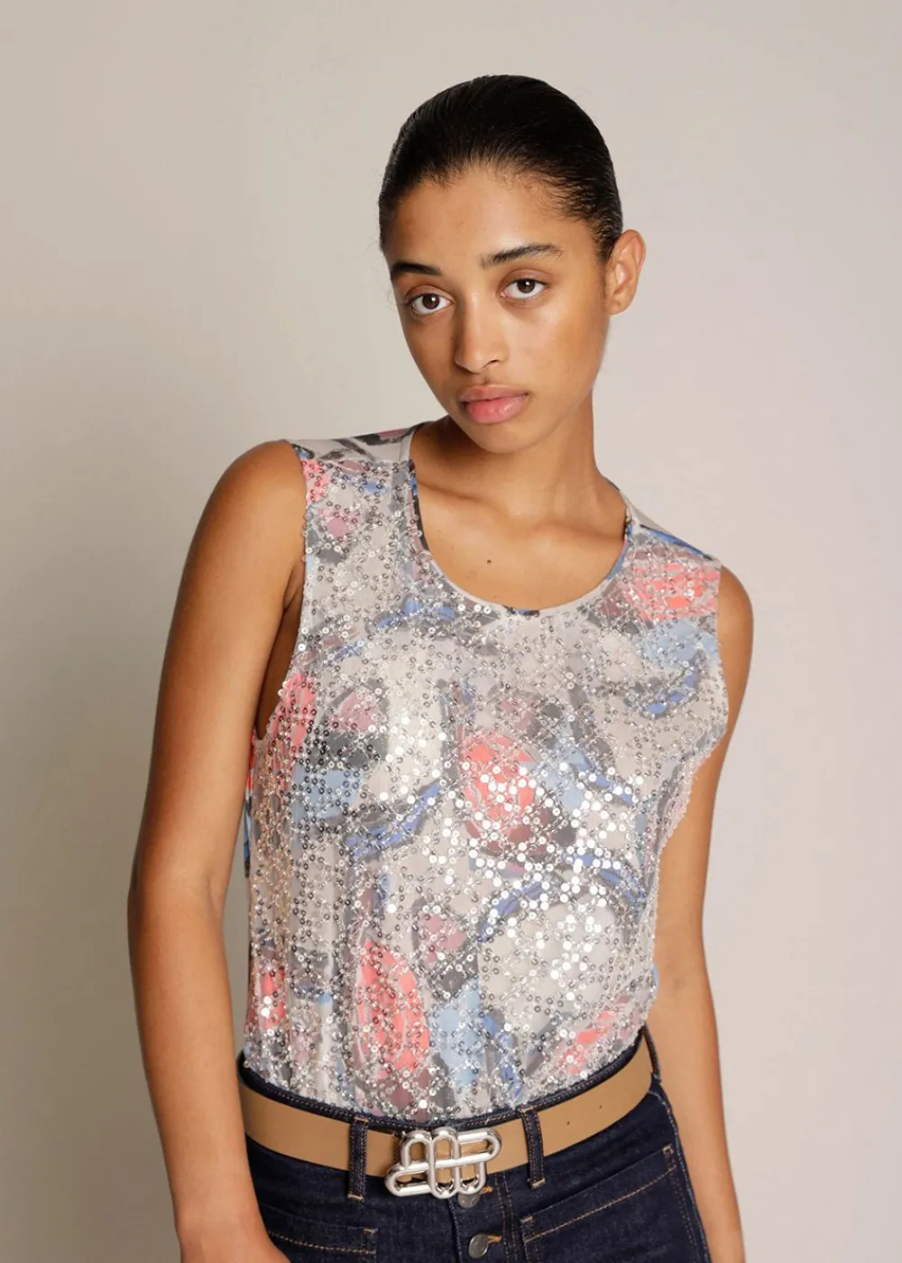 Peppen Sie Ihr Outfit mit diesem schönen, glänzenden Top von auf. Das Oberteil hat zarte Pailletten auf der Vorderseite, eine breite Knopfleiste und eine enge Passform.