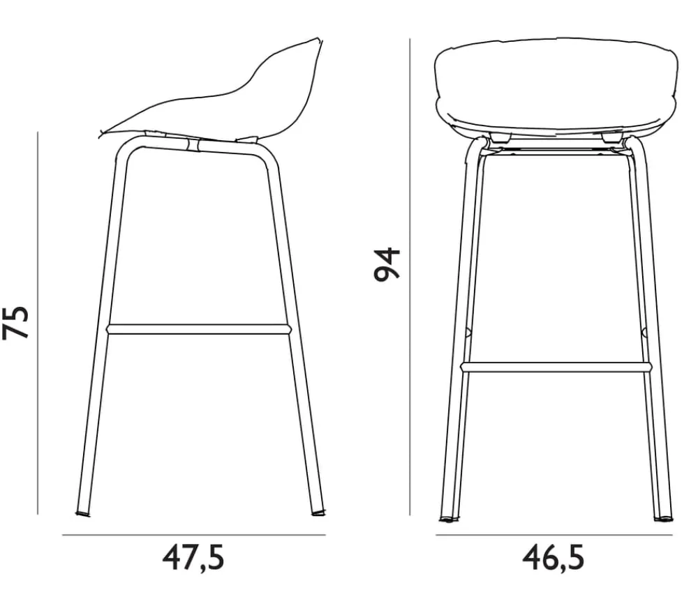 - Der Stuhl ist sowohl in 65 cm (Küche) als auch in 75 cm (Bar) erhältlich.