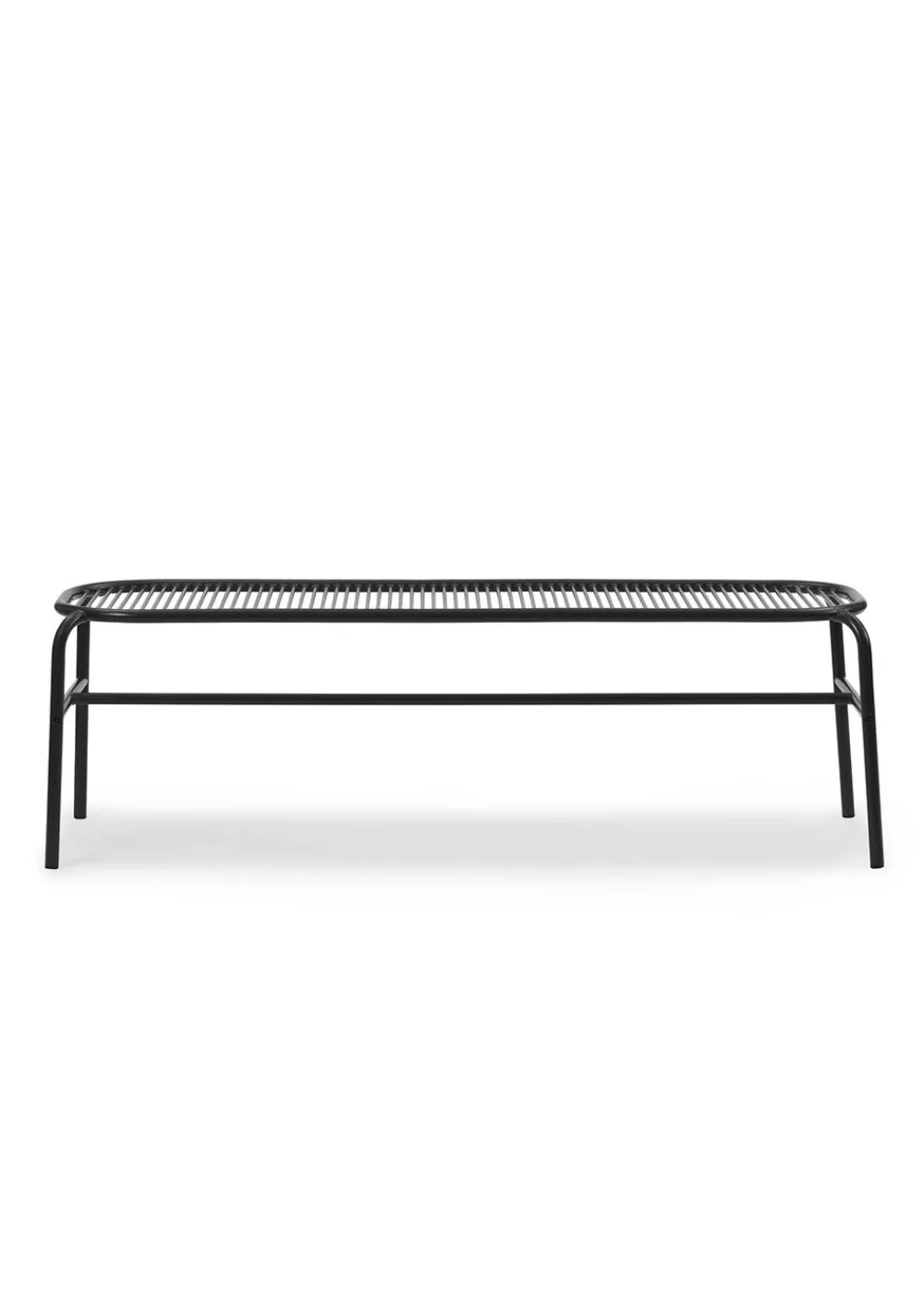 DieVig Bench von , entworfen von Simon Legald, ist ein echter Vertreter der skandinavischen Designtradition. Mit einer doppelten pulverbeschichteten Stahlstruktur ist die Bank eine Verschmelzung von Robustheit und eleganten Linien, die Langlebigkeit und minimale Wartung verspricht. Diese Outdoor-Bank ist Teil einer Kollektion, die Vielfalt und Funktionalität zelebriert und ein breites Spektrum an Möglichkeiten zur Gestaltung von Außenbereichen mit Flair bietet. Jedes Detail wurde durchdacht, um ein harmonisches und widerstandsfähiges Möbelstück zu schaffen, das den verschiedenen Elementen der Natur widersteht.