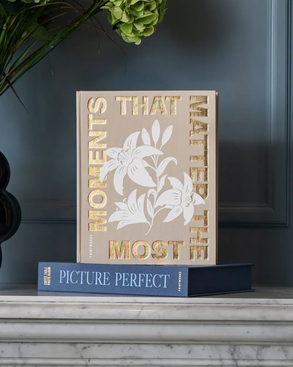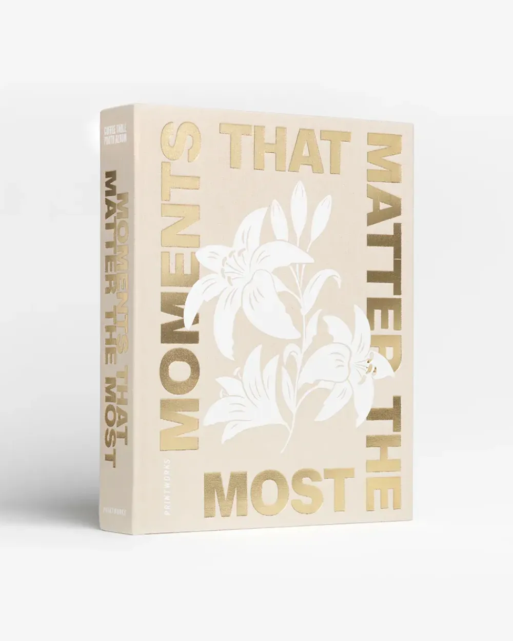 Das Fotoalbum – Moments That Matter The Most von ist eine schöne und stilvolle Art, Ihre wertvollen Erinnerungen zu bewahren. Das zeitlos gestaltete Album ist in einem eleganten, neutralen Beigeton gehalten, der in jedes Zuhause passt. Mit seiner robusten und luxuriösen Struktur vermittelt es ein Gefühl von Qualität und Sorgfalt, während die schönen Seiten dazu einladen, Bilder zu speichern, die wichtig sind.