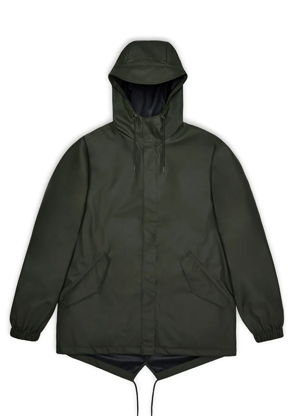 Cooler Unisex-Regenmantel von , der schlichte Eleganz ausstrahlt und mit einem markanten Kordelzug versehen ist. Diese Jacke hat eine entspannte Passform mit einem abfallenden Saum, der Funktionalität und Mode kombiniert. Ausgestattet mit einem durchgehenden Reißverschluss, der sich hinter einer minimalistischen Druckknopfleiste mit verdeckten Knöpfen verbirgt, verleiht diese Jacke einen klaren und stromlinienförmigen Look.