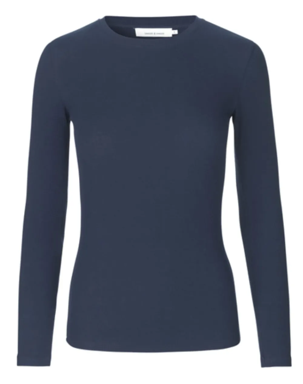 Eine schöne Bluse mit enger Passform und toller Qualität von der dänischen Marke Samsøe Samsøe. Das Modell hat lange, schmale Ärmel, einen Rundhalsausschnitt, der nah am Hals endet und ist in einer schönen Baumwollqualität mit einem leicht gerippten Muster gefertigt. Die perfekte Basic-Bluse.