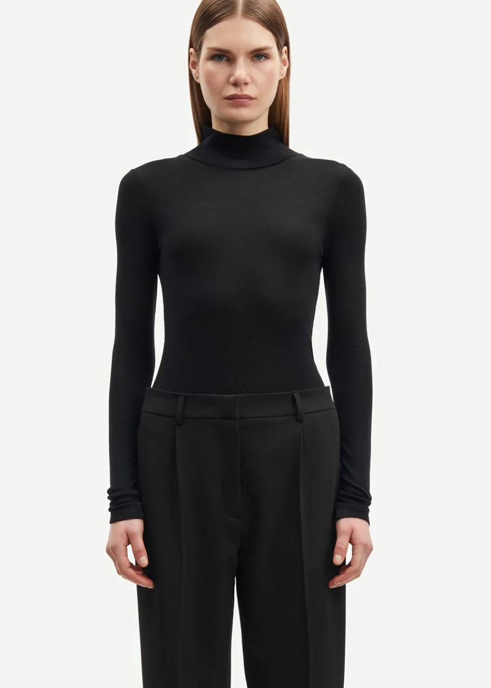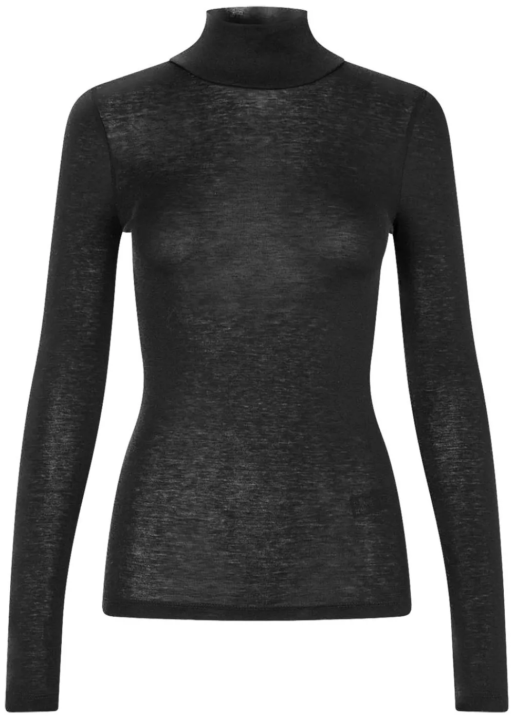 Aus weichem und atmungsaktivem Material gefertigt, fühlt sich die Bluse luxuriös auf der Haut an und sorgt auch an kühlen Tagen für optimalen Komfort. Die langen Ärmel und der Rollkragen verleihen einen klassischen Look, während die schmale Passform Ihre Silhouette elegant betont.