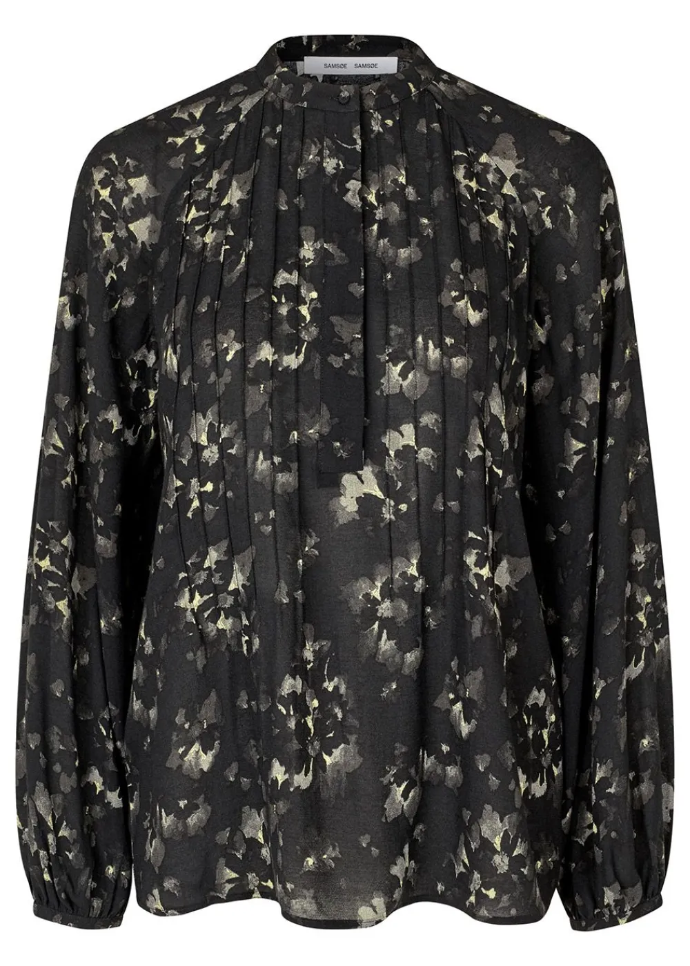 Diese Bluse von Samsøe Samsøe strahlt mit ihrem zarten Blumendruck in zarten Gelbtönen auf tiefschwarzem Grund lässige Eleganz aus.