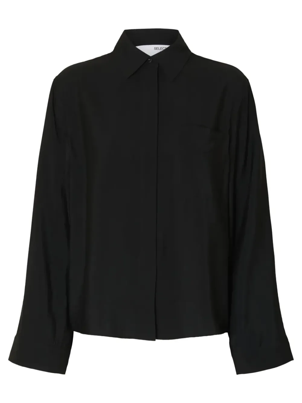 Feines Hemd mit klassischen Details von . Das Modell hat einen langen Ärmel, Knöpfe in der Mitte und einen klassischen Kragen. Die Qualität ist eine weiche Viskose mit Nylon.