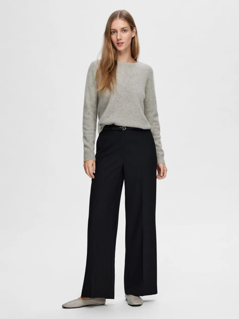 Selected Femme SLFManila LS KNit Cashmere O-Neck NOOS Light Grey Melange Online