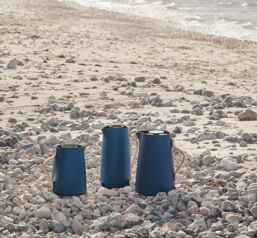 Emma Thermoskanne von Entworfen von dem dänischen Designerduo HolmbäckNordenttoft, das sich an der dänischen Designschule kennengelernt hat, an der beide ihren Abschluss gemacht haben, und das nun ein gemeinsames Designstudio betreibt. Die Thermoskanne ist eine Kombination aus stilvollem Design und praktischer Möglichkeit, Kaffee oder andere Heißgetränke auf Kaffeetellern zu Hause zu servieren. Zusammen mit einer schönen und praktischen Thermoskanne gibt es eine Auswahl an Farben, so dass Sie genau diejenige bekommen, die zu Ihrem Stil oder Ihrem Geschirr passt.