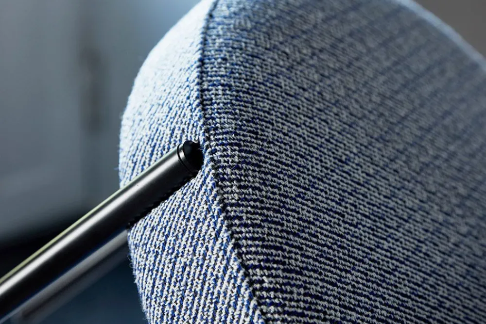 - Material Gestell aus lackiertem Metall in verschiedenen Farben, aus Messing oder aus gebürstetem Edelstahl. Sitz und Rückenlehne mit FSC-zertifiziertem Holzkern, gepolstert mit CMHR/HR-Schaum und bezogen mit dem gewünschten Textil. Wird mit Standard-Filzpantoffeln geliefert.