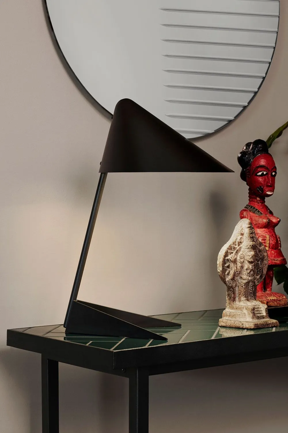 Die Leuchte „Ambience“, entworfen vom Dänen Svend Aage Holm-Sørensen, ist zugleich ein Paradebeispiel für die modernistischen Trends der 1950er Jahre und Holm-Sørensens einzigartiges Gespür dafür, Licht in figurativen Designs einzufangen. Der breite, skulpturale Schirm spendet ein fokussiertes und dennoch weiches Licht und ruht auf einem eleganten Zweibeinfuß, der zusammen ein asymmetrisches Meisterwerk aus attraktivem Licht bildet. Im Einklang mit den Designtrends der 50er Jahre ist die Leuchte in einer Kombination aus klassischen Farben und Messing, aber auch in einer modernen monochromen Version in kräftigen Farben erhältlich.