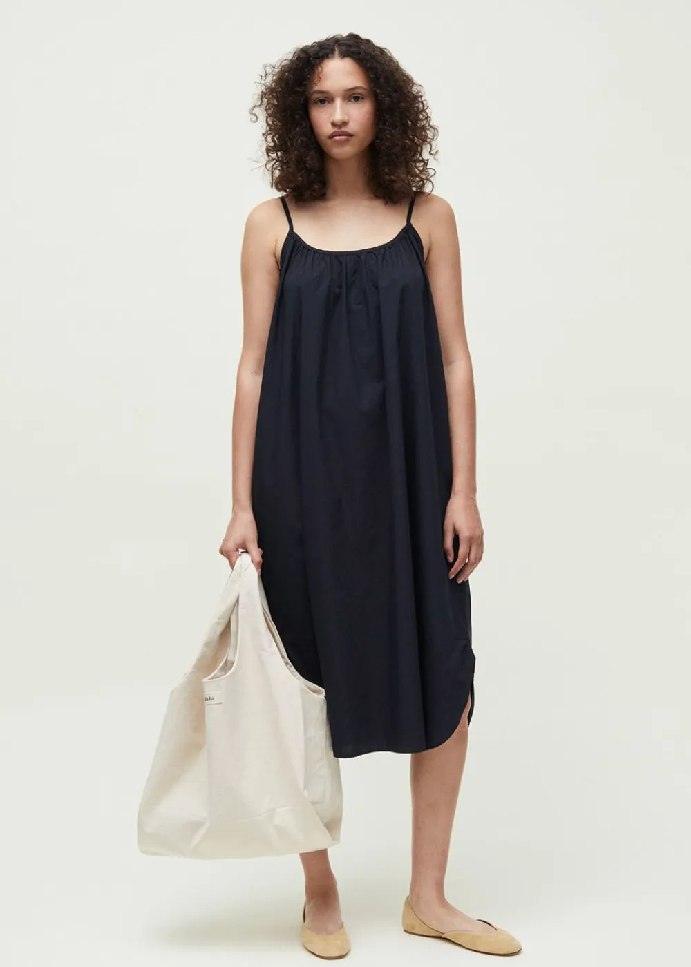 Das Strap Dress von ist der Inbegriff von lässiger Eleganz. Das Kleid ist aus 100 % Bio-Baumwolle gefertigt, was ihm eine weiche und leichte Textur verleiht, perfekt für warme Tage. Mit seinen schmalen Trägern und der lockeren, luftigen Silhouette schafft es einen femininen und mühelosen Look.