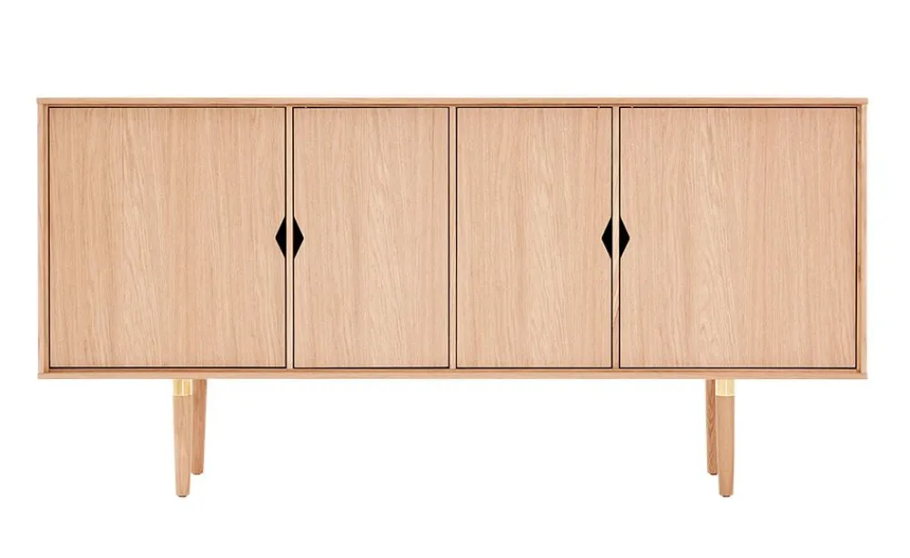 Das Sideboard von Unique wurde von byKATO entworfen. Diese schöne Aufbewahrungslösung mit elegantem Design ist aus Eichenfurnier gefertigt und mit einem Korpus in weiß pigmentiert oder schwarz erhältlich. Das Sideboard verfügt über vier Einlegeböden und besteht in der Regel aus einer Kombination von sowohl Einlegeböden als auch Schubladen. Dies bietet reichlich Stauraum.