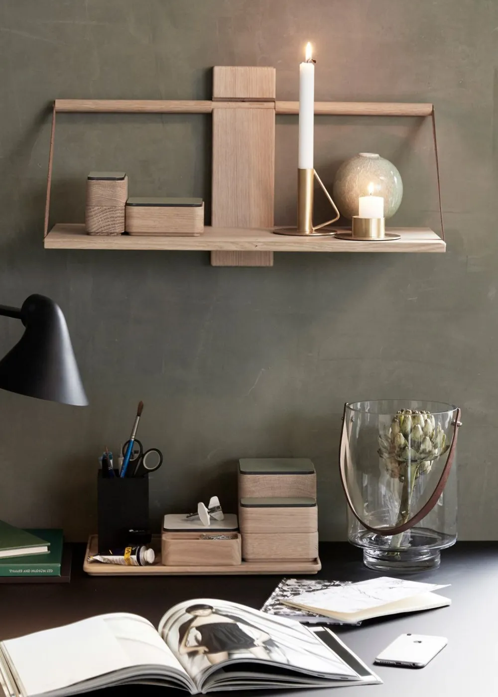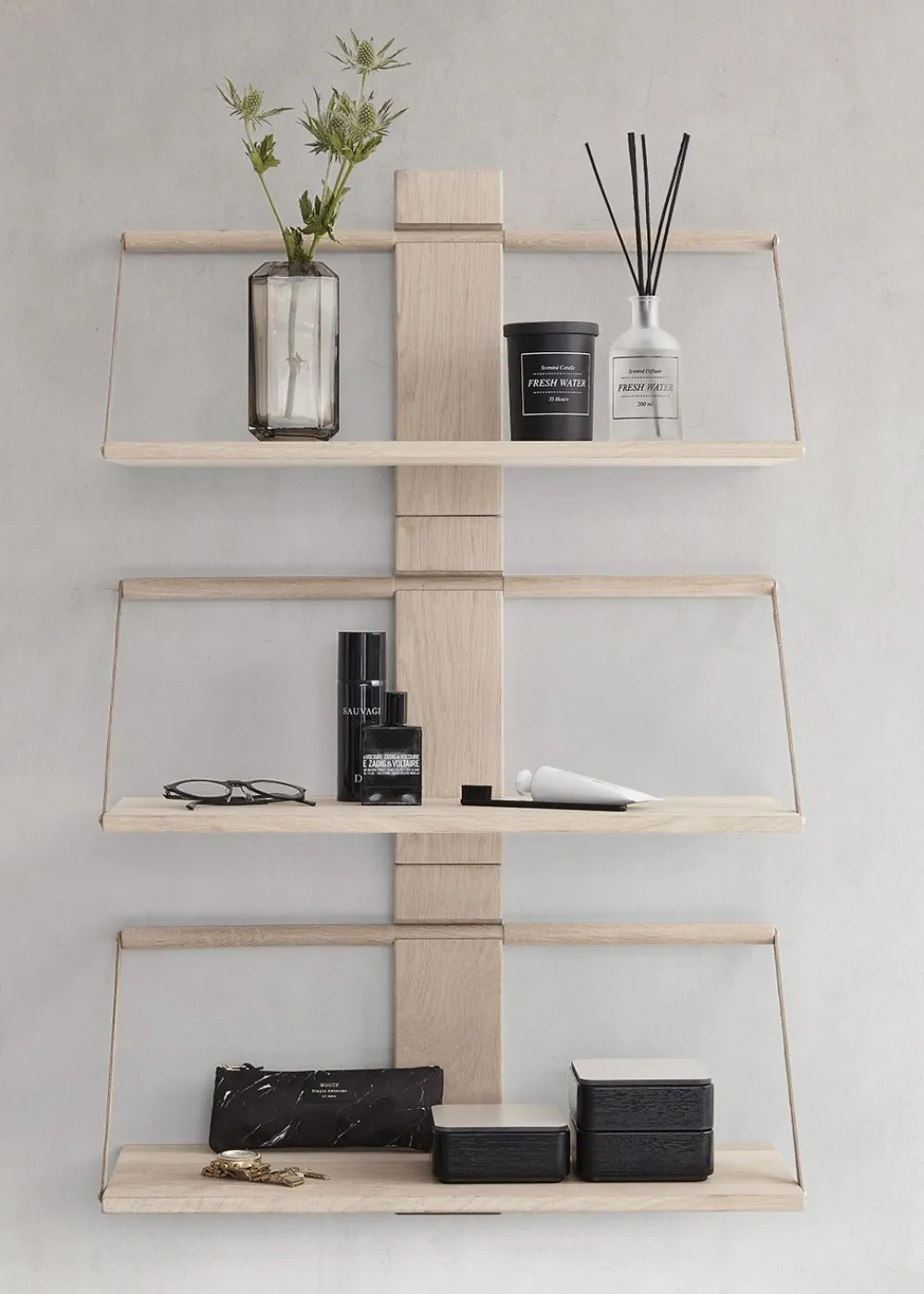 Das Holzwandregal von ist ein neues, aufregendes Regal mit Lederriemen. Es hat einen modernen und eleganten Look und passt perfekt in die meisten Haushalte. Mit seiner Schlichtheit und seinem edlen Design kann er sowohl im Eingangsbereich, im Bad, in der Küche und im Wohnzimmer eingesetzt werden. Das Regal ist perfekt für die Aufbewahrung von Ornamenten, Bildern, Blumen und Kerzen. Wood Wall ist einfach an der Wand zu montieren und es ist möglich, mehrere Regale übereinander zu legen, so dass das Regal wie ein Bücherregal aussieht. Es ist aus massivem Eichenholz gefertigt und die Riemen sind aus echtem Leder.