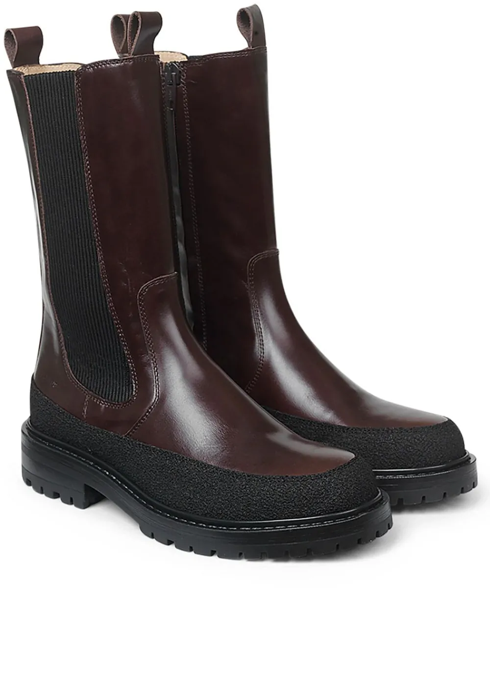 Mittlere Stiefelette von . Der Stiefel ist aus Leder gefertigt und hat einen Gummizug im Schaft. Der Stiefel ist mit Leder gefüttert.