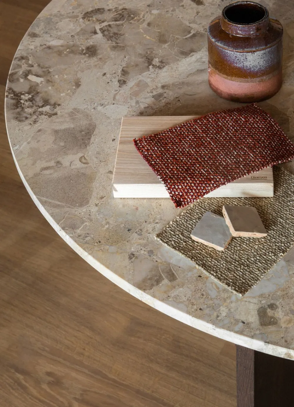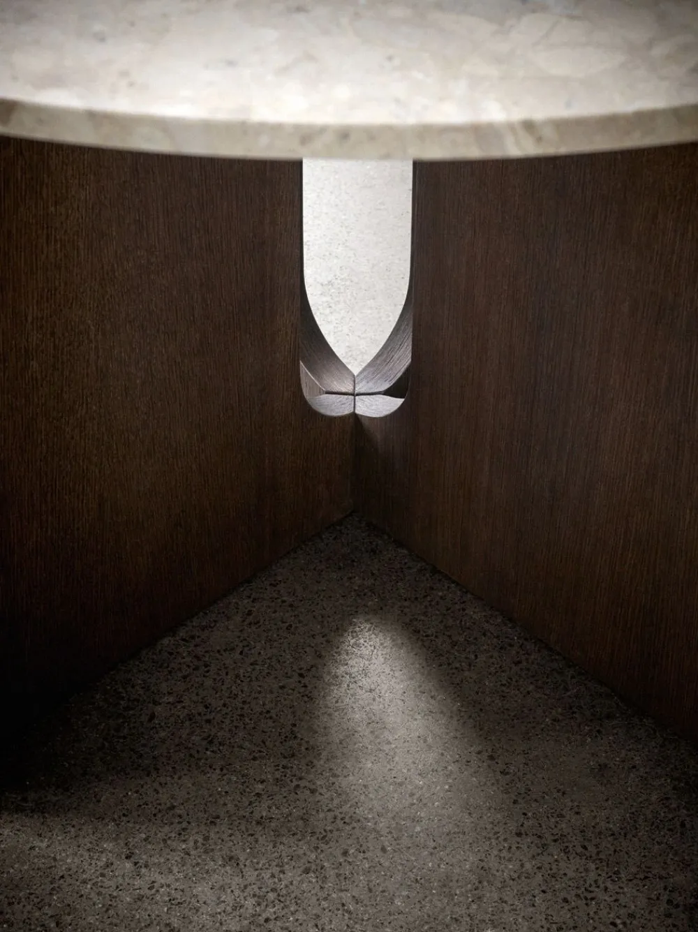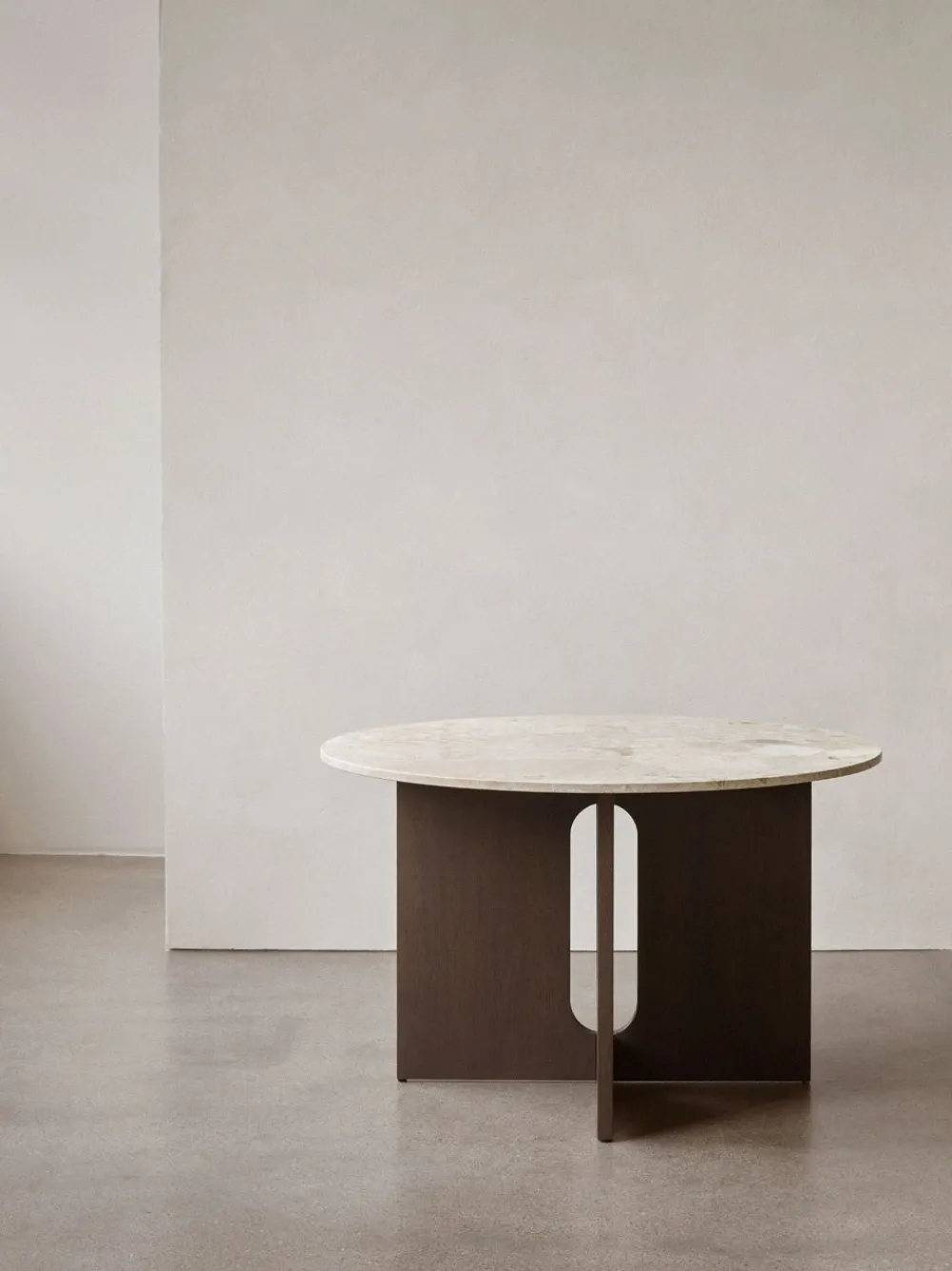 Mit ihren geometrischen Formen und aufregenden nordischen Materialien ist Danielle Siggeruds Androgyne-Serie eine einzigartige Tischkollektion, die sofort einen Blickfang im Raum schafft. Das Gestell in Eiche hat mit seinen breiten Beinen und dem geometrischen Loch in der Mitte einen charaktervollen Ausdruck, der einen einzigartigen visuellen Ausdruck erzeugt. Das Untergestell wird entweder durch eine passende Eichenplatte oder eine Platte aus Kunis Brescia Sandstein mit einem rohen und minimalistischen Look ergänzt.