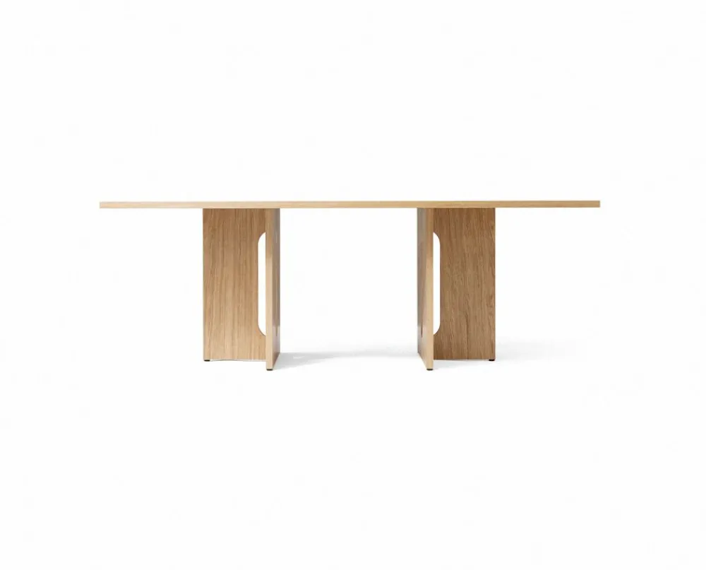 Mit ihren geometrischen Formen und aufregenden nordischen Materialien ist die Androgyne-Serie von Danielle Siggerud eine einzigartige Tischkollektion, die sofort einen Blickfang im Raum schafft. Das Untergestell aus Eiche hat einen charaktervollen Ausdruck mit seinen breiten Beinen und dem geometrischen Loch in der Mitte, das einen einzigartigen visuellen Ausdruck schafft.