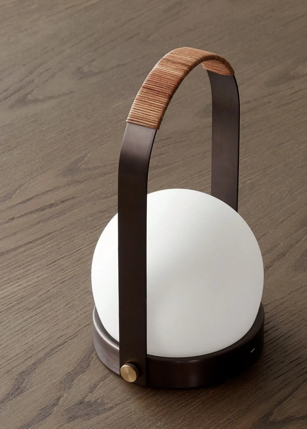 - An der Unterseite der Lampe befindet sich ein USB-Ladegerät für Standardsteckdosen.